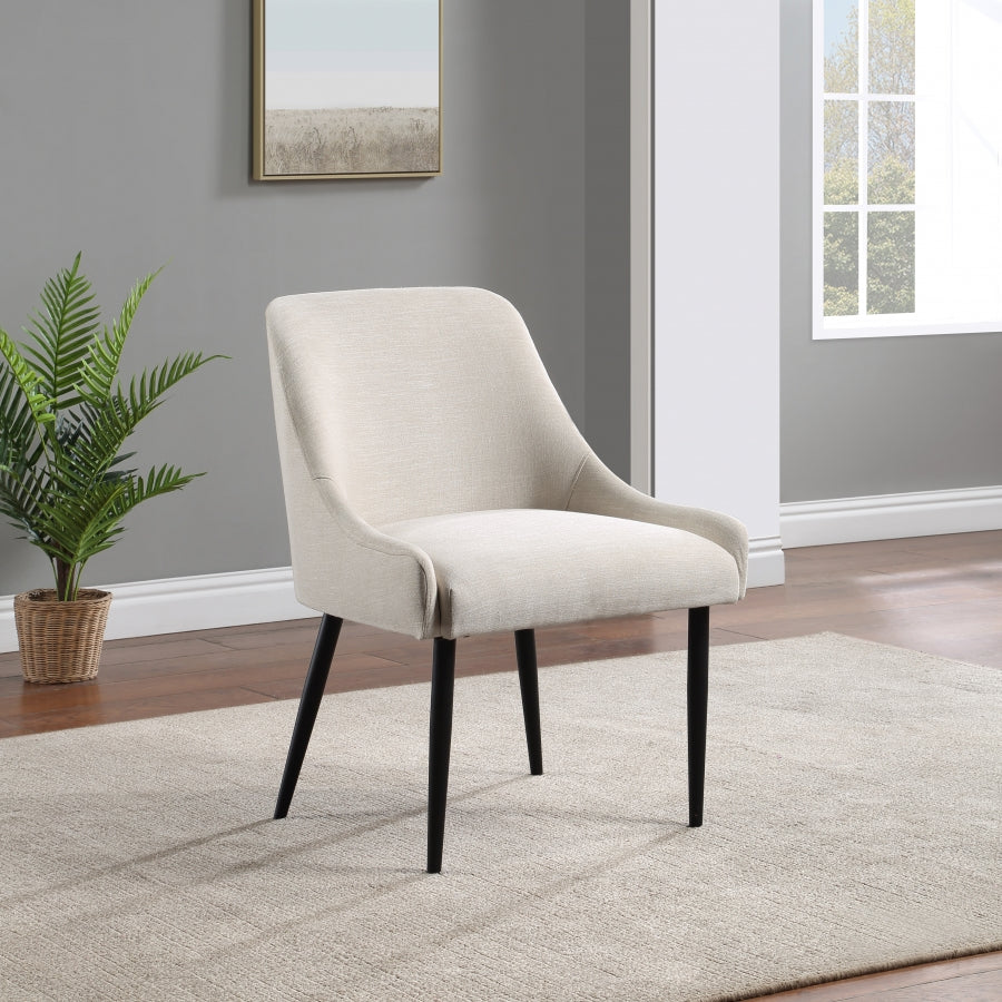 Offrez à vos invités un traitement VIP avec cette magnifique chaise de salle à manger Camden. Entièrement recouverte du dossier au siège d'un riche tissu texturé en lin et fortement rembourrée, cette chaise offre le confort dont vos invités ont besoin pour se sentir chez eux et s'amuser. Les pieds entièrement en métal mat offrent une durabilité robuste à cette magnifique chaise de salle à manger, ce qui en fait un ajout fabuleux à votre salle à manger contemporaine. Associez-le à la table de votre choix pour un look personnalisé qui impressionne.