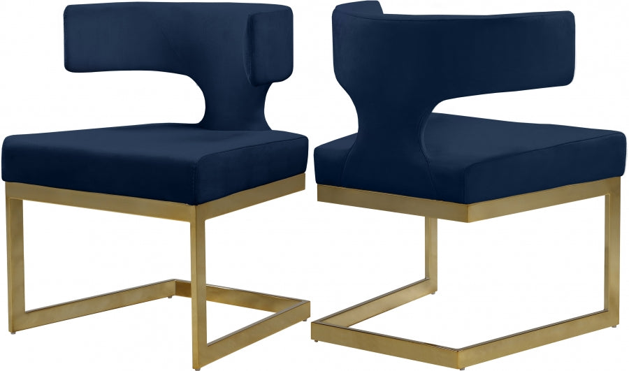 Apportez une vie artistique à votre salle à manger avec cette chaise de salle à manger en velours Alexandra. Cette chaise somptueusement aménagée a un design de dossier qui berce votre corps lorsque vous êtes assis, faisant de l'heure du dîner une expérience de relaxation totale. Le revêtement en velours doux recouvre le dossier et le siège rembourré, vous assurant un confort supplémentaire pendant que vous mangez. Une base en métal doré riche ajoute à la belle durabilité de la chaise.