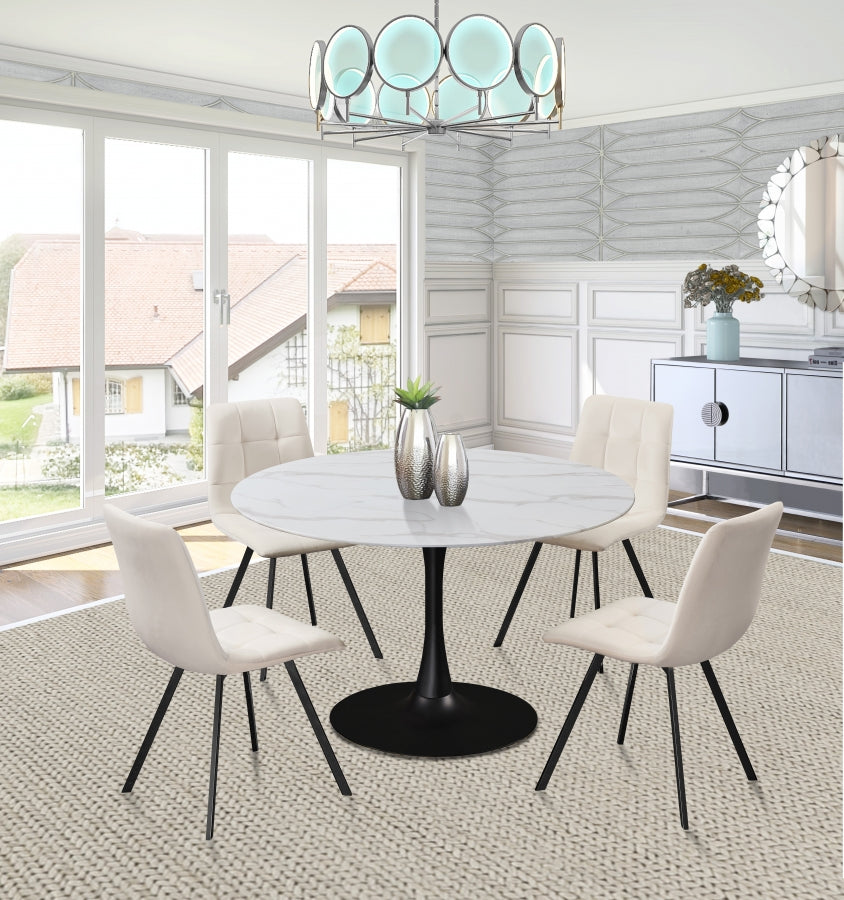 Tirez vers le haut la chaise de salle à manger en velours doux Annie et asseyez-vous un peu. Ornée d'un capitonnage attrayant, cette chaise légère et contemporaine est dotée d'un dossier qui s'incurve doucement dans le siège, et les deux sont rembourrés pour votre confort. Les pieds en métal noir mat sont de forme carrée et s'inclinent gracieusement pour donner à cette chaise une stabilité accrue. L'Annie se marie bien avec plusieurs tables de salle à manger disponibles.