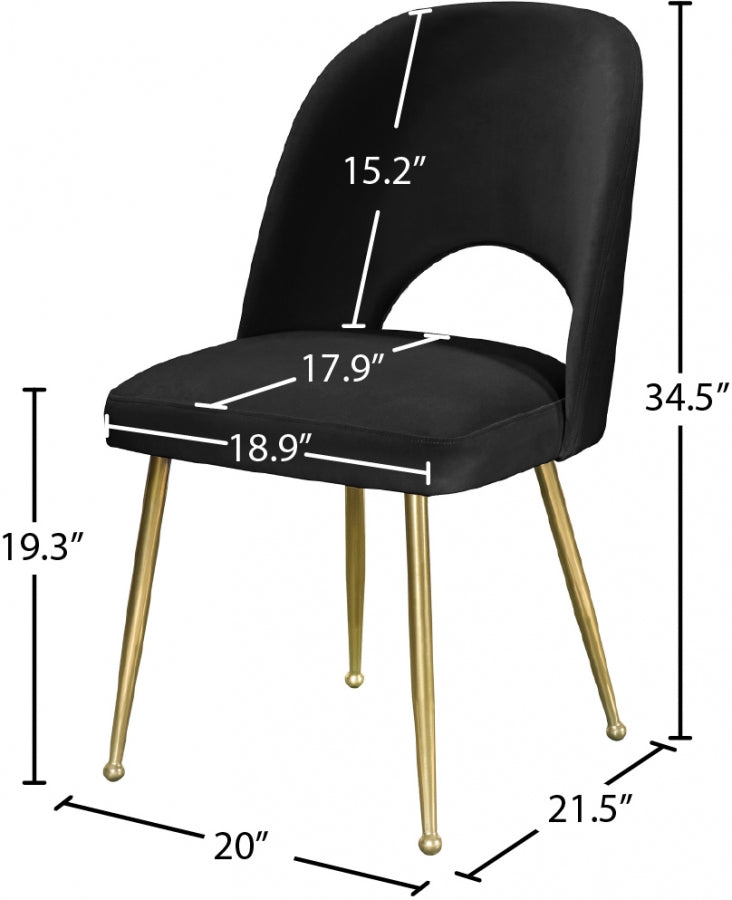 Asseyez-vous pendant des heures sur la chaise de salle à manger en velours Logan, quelle que soit la tâche à accomplir. Le dossier et le siège sont bien rembourrés avec de la mousse, et le dossier a une découpe semi-circulaire dans la région lombaire pour votre confort. La chaise a une structure en bois et est soutenue par quatre pieds en ou brossée, avec des boules décoratives pour les pieds. De style contemporain, cette chaise se marie bien avec n'importe quelle table ou décoration.