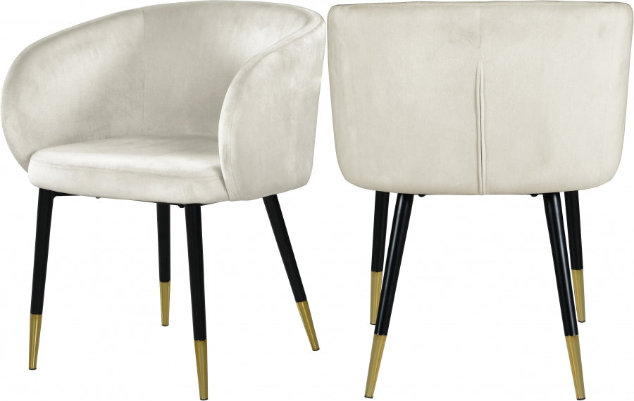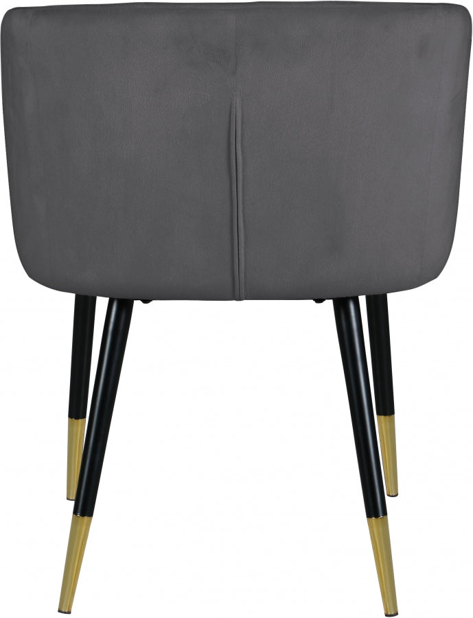 Redéfinissez votre espace de vie avec cette chaise de salle à manger Louise en velours à la mode. Dotée d'un superbe revêtement en velours et d'un dossier incurvé, cette chaise offre un siège confortable pour vous détendre. Avec un cadre soutenu par des pieds en métal noir avec des pointes dorées, cette chaise contemporaine n'est pas seulement robuste et accrocheuse ; son attrait élégant et sa durabilité en font un coup sûr un favori dans votre maison pour les années à venir.