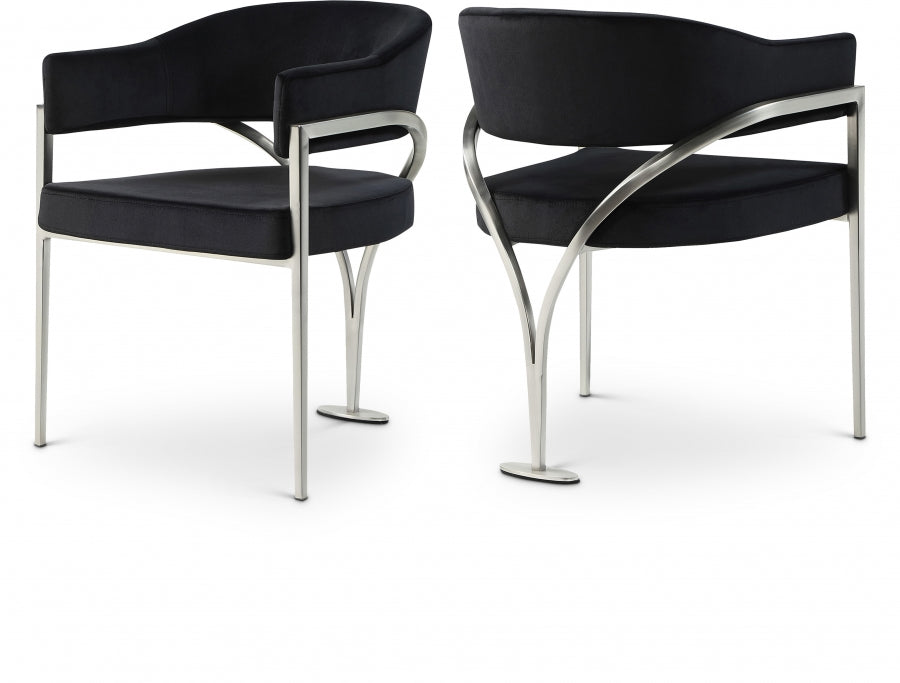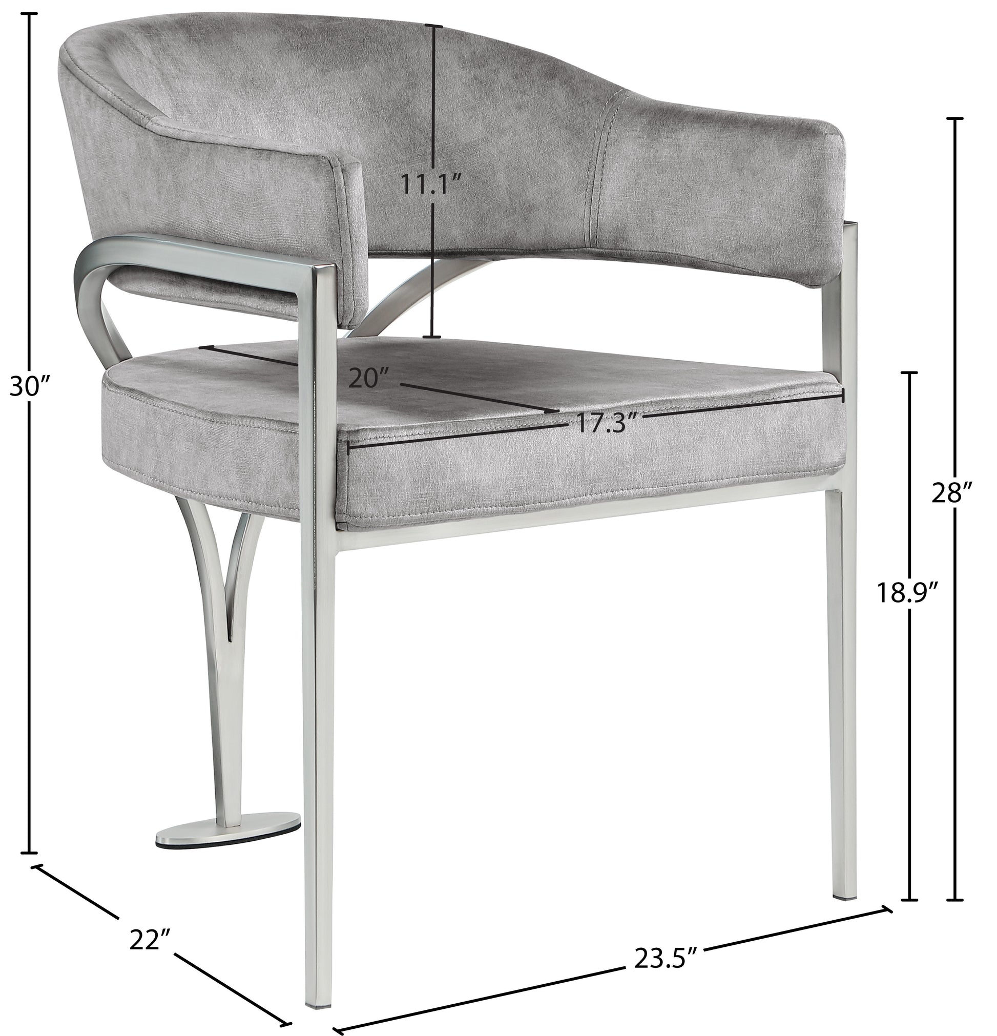 Donnez à votre salle à manger un nouveau look époustouflant lorsque vous rapportez à la maison une ou plusieurs de ces chaises de salle à manger en velours Madelyn. La chaise Madelyn est synonyme de confort et de style avec son design à dossier cylindrique et ses lignes sophistiquées. Recouverte d'un velours luxueux invitant pour la peau et ultra doux au toucher, cette chaise est dotée d'une structure en fer pour une durabilité et une utilisation durable dans votre maison occupée. La finition chromée brossée ajoute une touche finale de mode à cette jolie chaise de salle à manger.