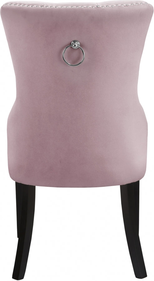 Dînez dans un style luxueux avec la chaise de salle à manger en velours blush Nikki. Dotée d'un dossier haut incurvé, d'un siège rembourré moelleux et d'un revêtement en velours poudré capitonné profond parsemé de têtes de clous chromées, cette chaise de salle à manger portera à coup sûr votre expérience culinaire à un tout autre niveau. Les pieds en bois Espresso offrent un soutien solide et complètent le superbe revêtement poudré pour un design élégant et contemporain.