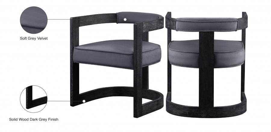 Les invités seront trop impressionnés lorsque vous les assiérez dans cette chaise de salle à manger en velours Regency. La construction en bois massif donne à la chaise un départ durable tandis que sa finition gris foncé lui donne un look haut de gamme, presque aisé. Cette chaise contemporaine est équipée d'un doux rembourrage en velours contre son dossier et son siège arrondis, assurant le confort pendant que vous dînez.