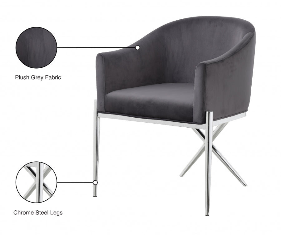 Diffusez élégance et modernité dans votre salle à manger avec cette chaise de salle à manger Xavier en velours de Meridian Furniture. Cette belle chaise est dotée d'un siège tonneau simple avec un coussin et un dossier moelleux, garantissant que chaque repas est confortable. Les pieds en acier chromé offrent un soutien durable lorsque vous êtes assis, et un pied en « X » à l'arrière offre à la chaise une ambiance ultra-moderne. La finition chromée de la base est élégante et chic, donnant à cette chaise une touche contemporaine qui s'intègre parfaitement dans n'importe quelle salle à manger moderne. Le revêtement en velours est durable et résistant mais doux contre votre corps, élevant les repas à une expérience luxueuse.
