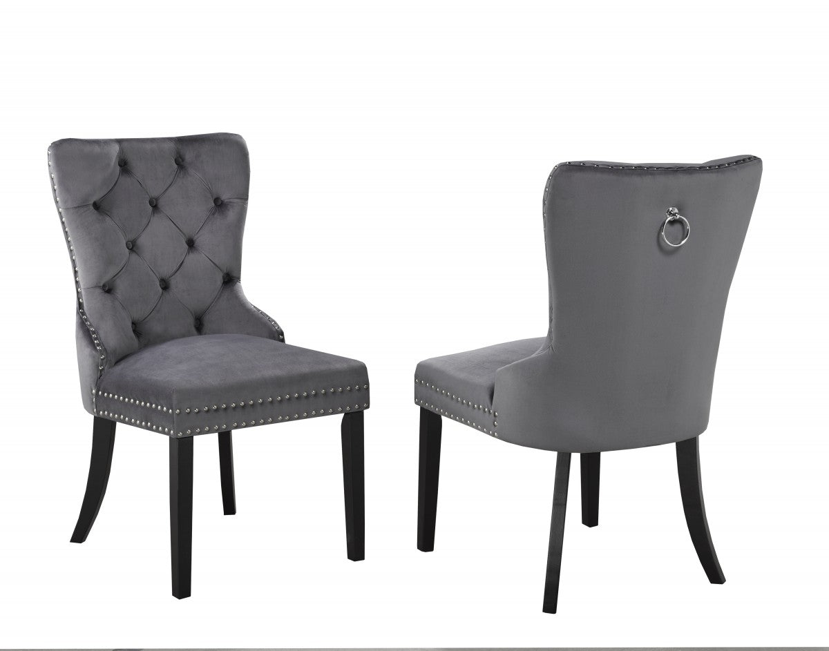 La chaise de salle à manger Ariel est un ajout bienvenu à tout espace de salle à manger chic. Le tissu en polyester élégant mais durable présente une finition veloutée luxueuse pour un look et une sensation invitants. Les accents touffetés traditionnels sur le dossier du siège rembourré sont un beau complément à la garniture à tête de clou sophistiquée et robuste. Une poignée de tirage chromée pratique à l'arrière ajoute un attrait moderne et facilite le repositionnement de cette chaise de salle à manger au besoin. Avec sa couleur neutre à la mode et ses pieds en bois foncé, cette chaise polyvalente s'intègre parfaitement dans n'importe quel décor contemporain ou traditionnel. Regroupez plusieurs chaises de salle à manger Ariel autour d'une table pour créer un ensemble de salle à manger élégant ou placez-les individuellement dans votre maison comme pièces d'appoint ou pour des sièges supplémentaires lors de vos réceptions.