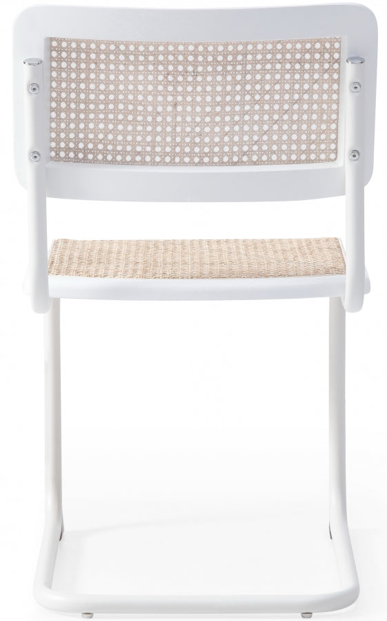 Donnez à vos invités de quoi parler avec cette chaise de salle à manger à revêtement en poudre blanc Kano. Dotée d'un dossier et d'un siège en rotin/canne, cette chaise de salle à manger unique vous donne la sensation d'une escapade sur une île lointaine. Son cadre en métal enduit de poudre est à la fois élégant et robuste, assurant un soutien à tous ceux qui consomment de la place. Son design du milieu du siècle est accrocheur et actuel parfait, ce qui en fait la pièce d'accent parfaite pour votre salle à manger contemporaine.