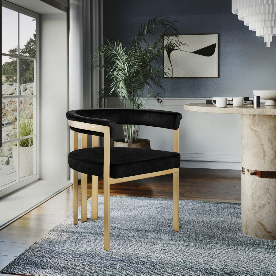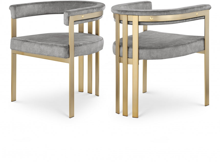 Transformez votre espace salle à manger en un havre contemporain avec cette chaise de salle à manger en velours Marcello. Son velours doux et haut de gamme est doux sur lequel vous pouvez vous asseoir, tandis que sa structure en fer en laiton brossé assure une durabilité pour les années à venir. Son dossier incurvé offre un soutien lorsque vous êtes assis et savourez votre repas, afin que votre dos ne se fatigue pas ou ne vous fasse pas mal pendant que vous mangez. Son design incurvé et contemporain est parfait pour toute maison moderne.