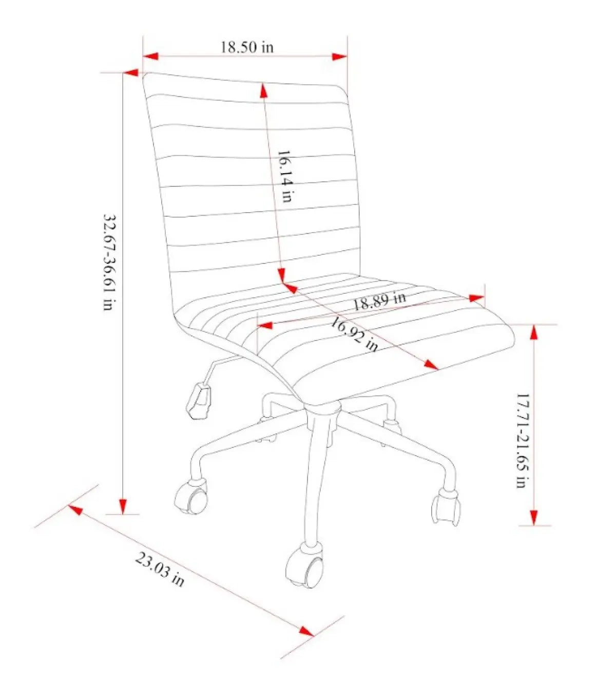 Conçue pour la robustesse, elle repose sur un cadre et une base en fer de $320\text{ mm}$, tandis que son **vérin hydraulique de }80\text{ mm}$ vous permet d'ajuster la hauteur du siège selon vos préférences exactes. Sa conception sans accoudoirs offre une liberté de mouvement exceptionnelle et permet de glisser la chaise sous n'importe quel bureau pour un gain d'espace maximal. Que ce soit pour le télétravail ou les études, la chaise Otto est un choix judicieux pour ceux qui recherchent le confort durable sans encombrement.