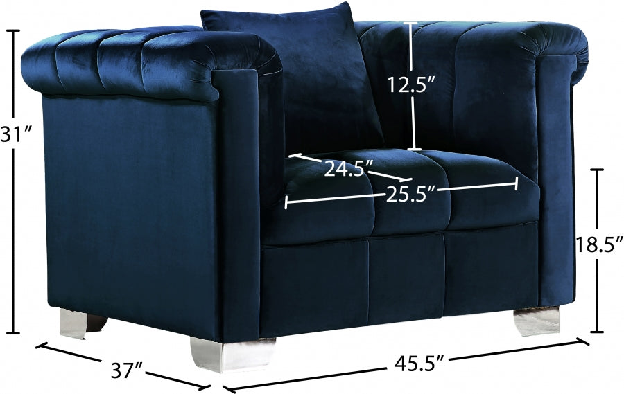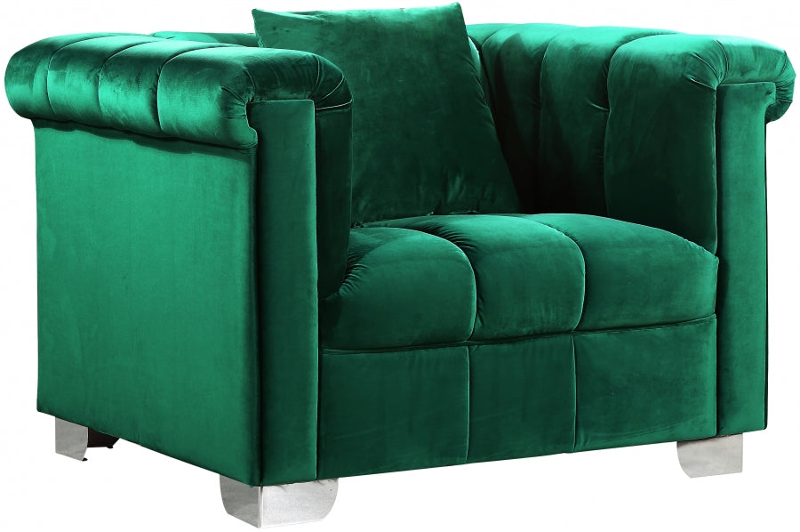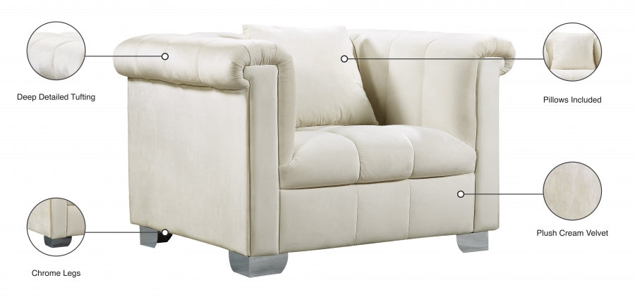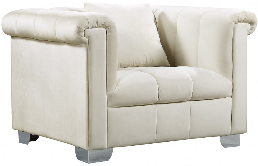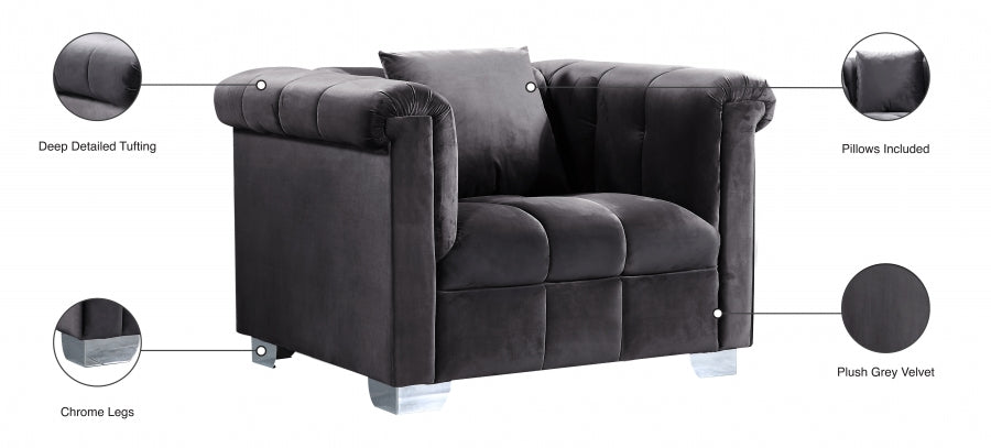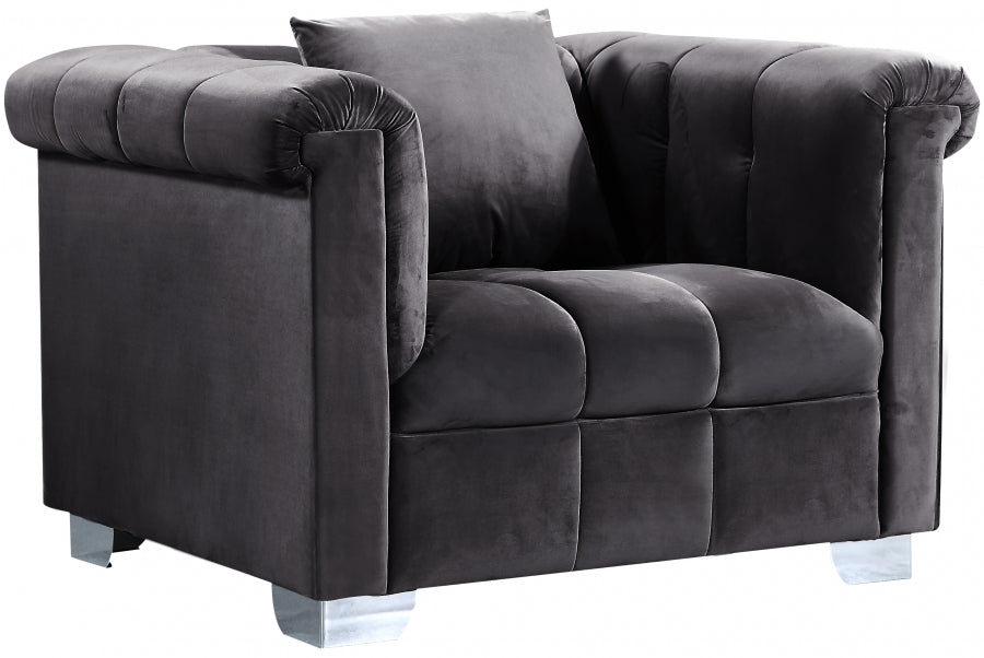 La collection Kayla de Meridian Furniture. Dispose d'un revêtement en velours magnifiquement conçu avec des pieds chromés personnalisés. Cette collection est garantie d'être le point culminant de n'importe quelle maison. Coussins inclus.