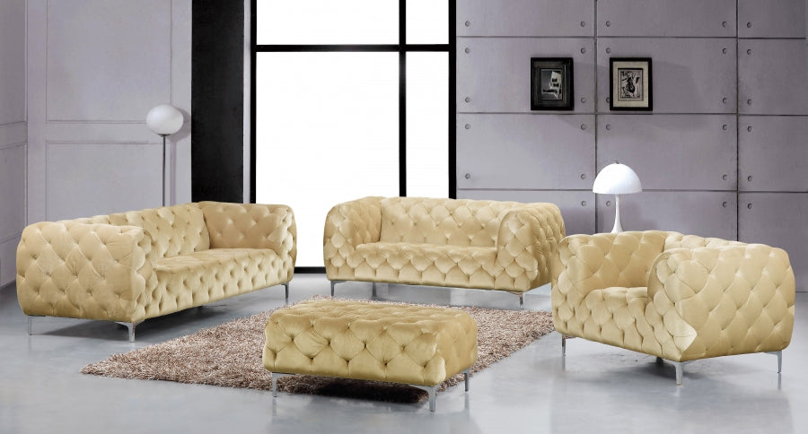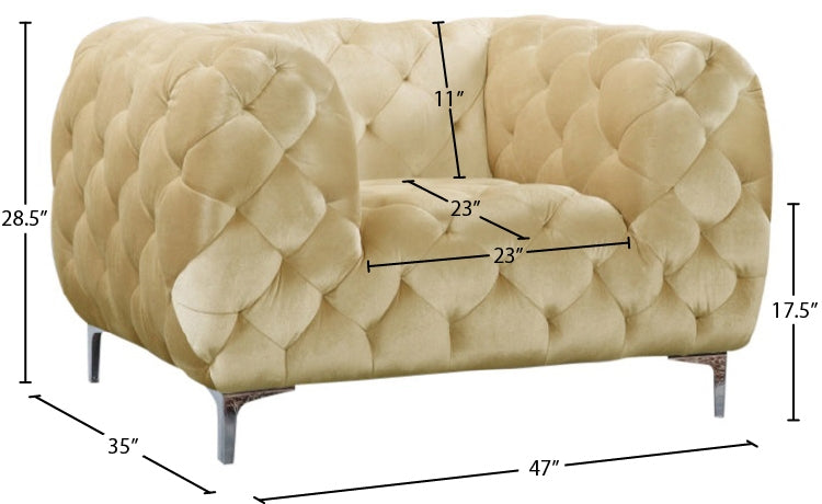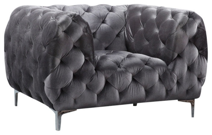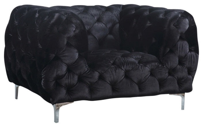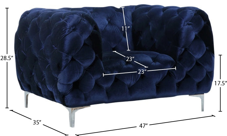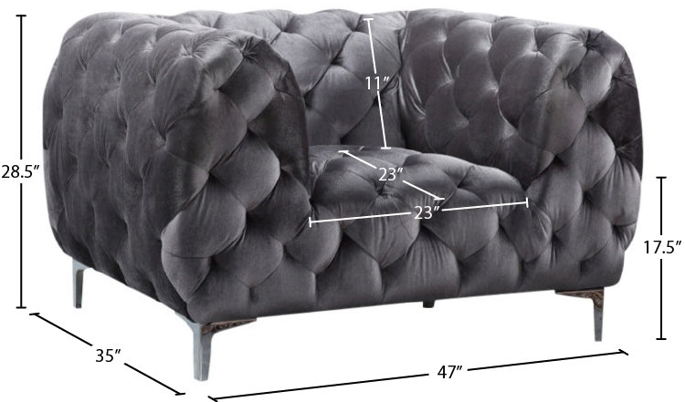 Élégant et accrocheur, le superbe salon Mercer de Meridian Furniture est le complément parfait à tout espace. Rich Velvet recouvre le siège moelleux et confortable, rembourré de mousse haute densité et d'un design capitonné moderne. La force et la beauté sont garanties avec une structure en bois massif et des pieds chromés.