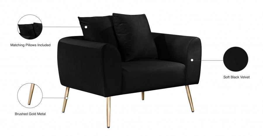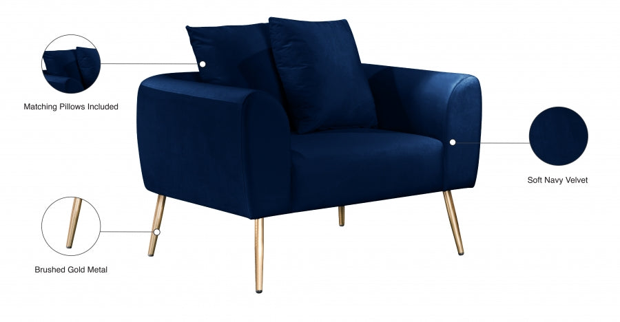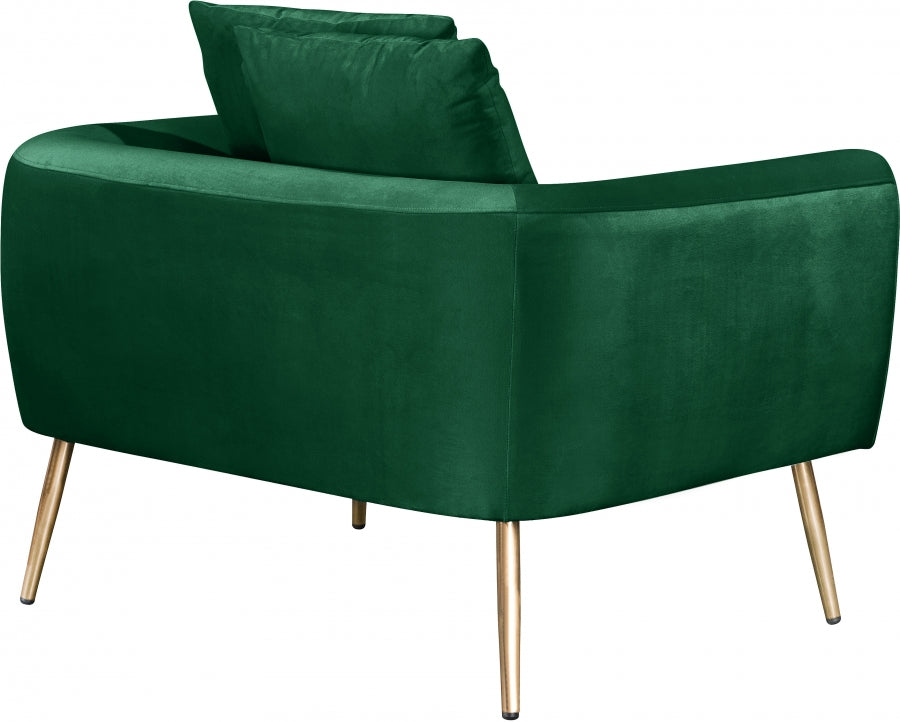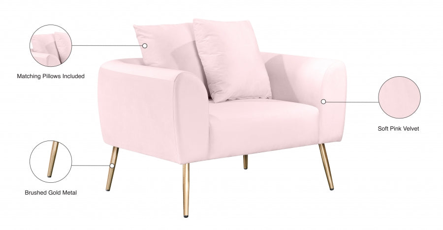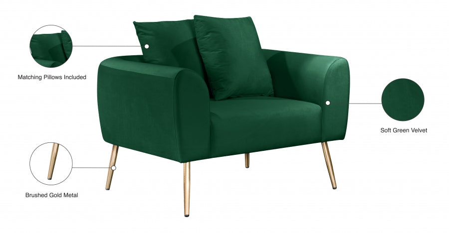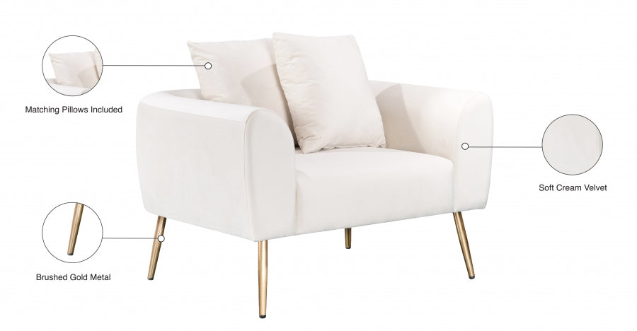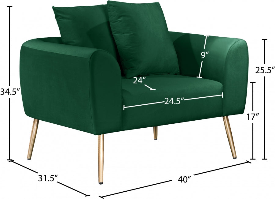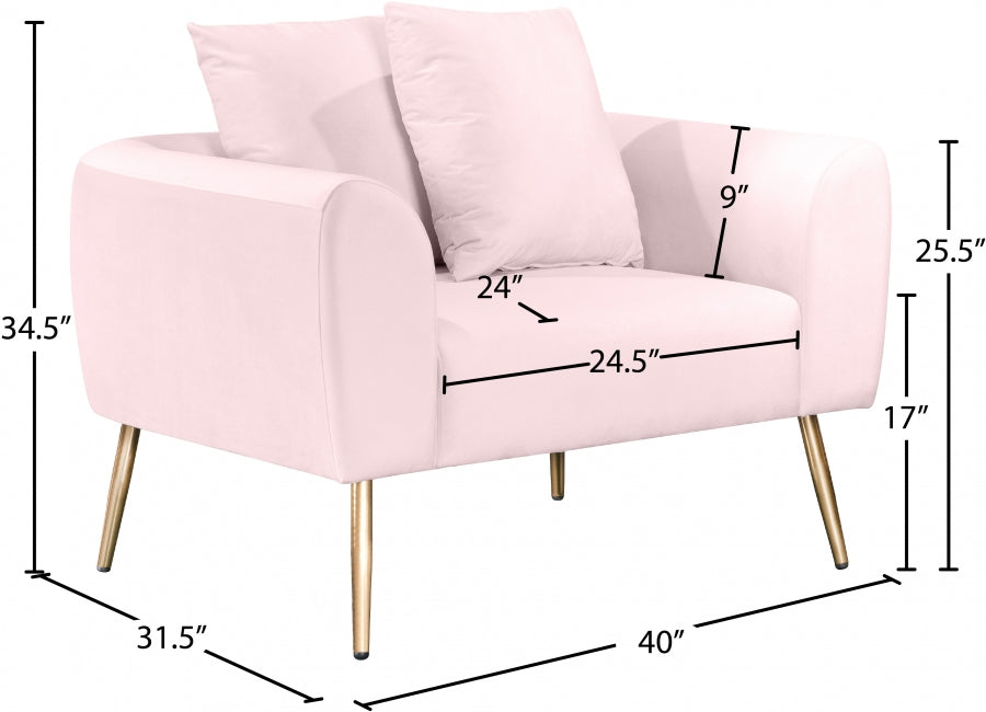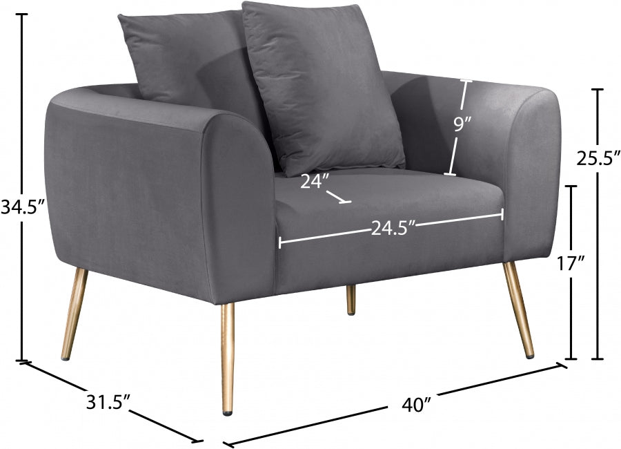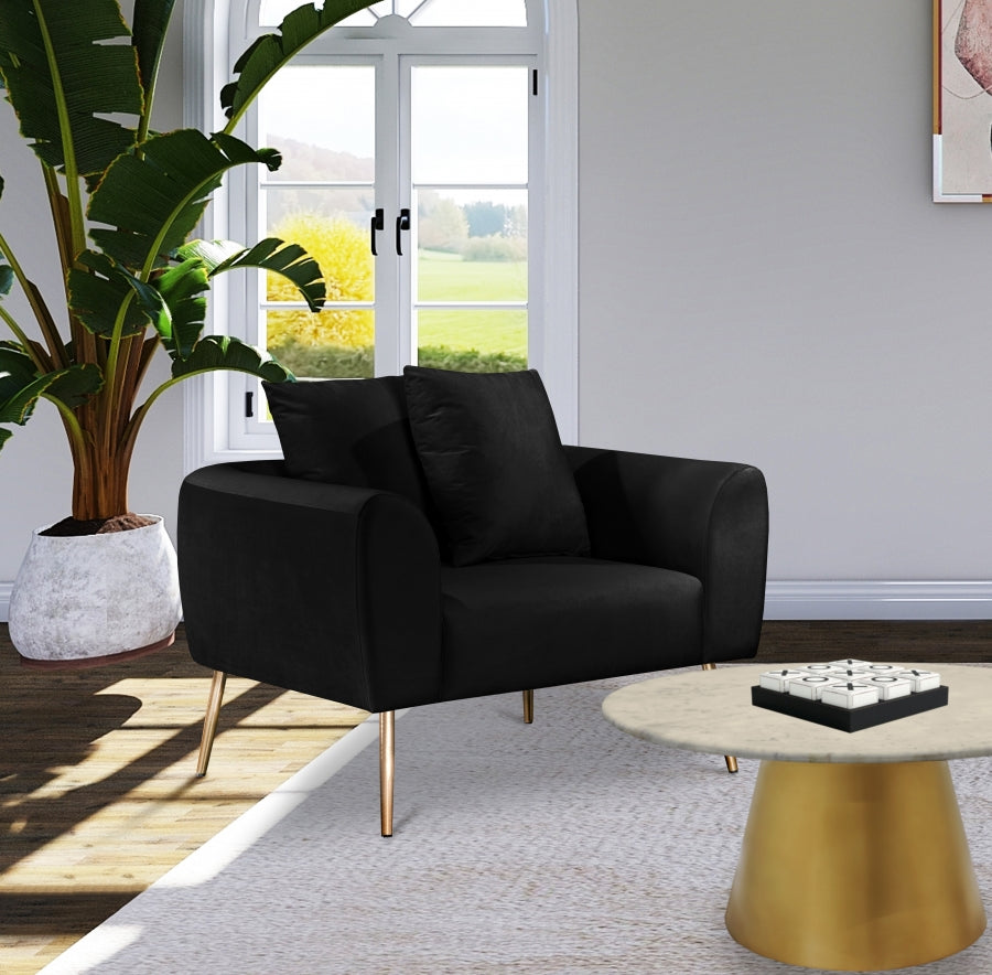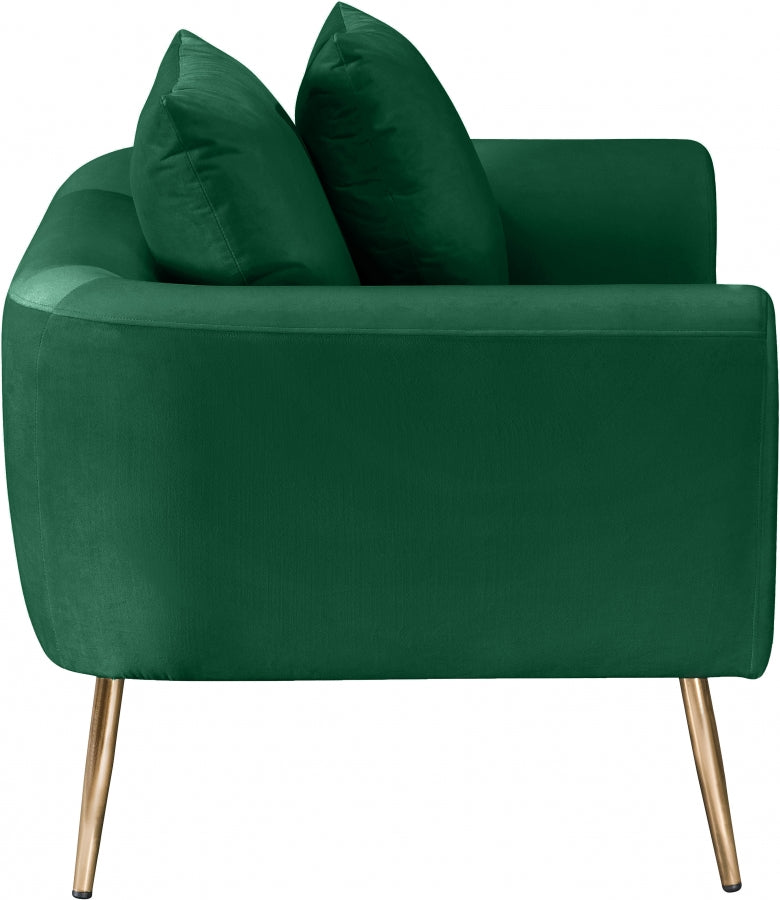 Asseyez-vous dans ce fauteuil en velours Quinn et vous réfléchissez peut-être à deux fois avant de vous relever. Cette chaise super confortable est dotée d'un revêtement en velours doux qui recouvre ses annulations, son siège et son dossier abondamment rembourrés, garantissant qu'il s'agit invariablement du meilleur siège de la maison. Les deux coussins assortis ajoutent à son ambiance accueillante, tandis que les pieds en acier doré rendent le design particulièrement moderne.