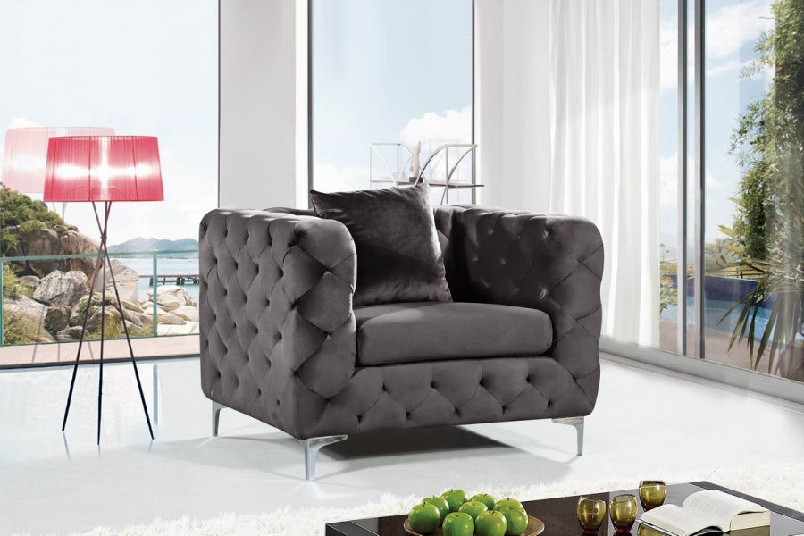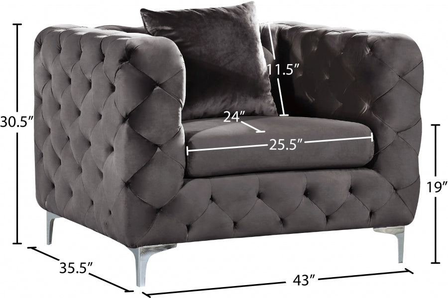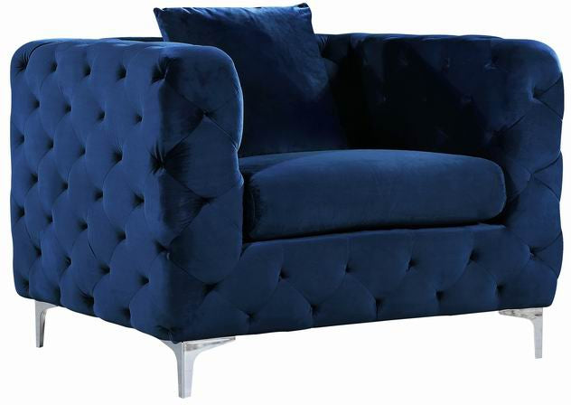 Plongez dans le confort accueillant de cette méridienne en velours bleu Scarlett. Cette chaise définit l'élégance et la sophistication avec son look rétro carré et son rembourrage profond capitonné qui couvre chaque pouce des côtés, du dos et du devant. Le matériau en velours bleu est luxueux au toucher tandis que les pieds chromés confèrent à la chaise un soutien solide et une finition à la mode. Associez-le à d'autres articles de la collection Scarlett pour un look complet.