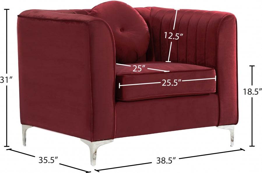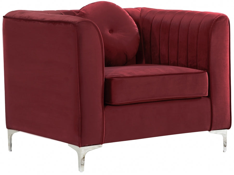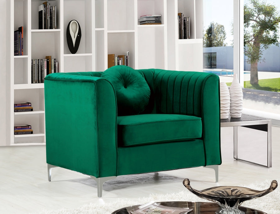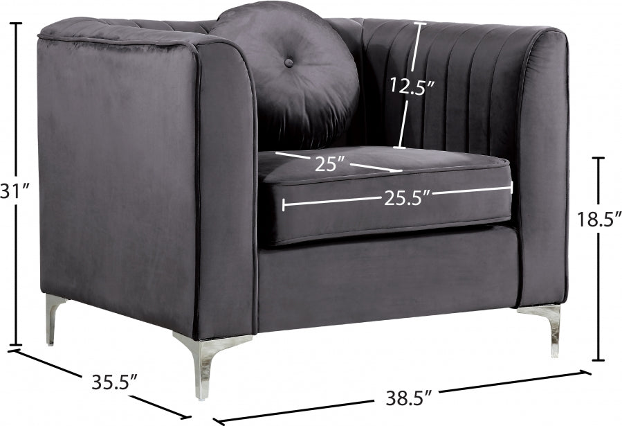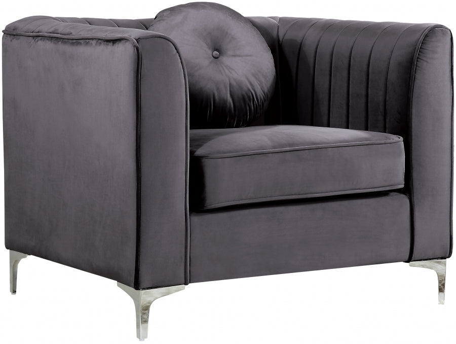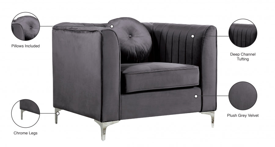La collection Isabelle de Meridian Furniture. Dispose d'un revêtement en velours magnifiquement conçu avec des pieds chromés personnalisés. Cette collection est garantie d'être le point culminant de n'importe quelle maison. Coussins inclus.
