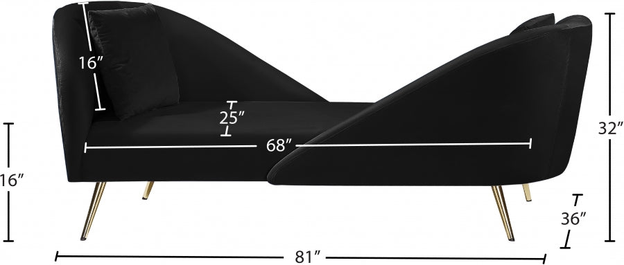 Apportez du glamour et de l'attrait hollywoodien du vieux monde à votre espace avec cette méridienne en velours Nolan. Cette méridienne est équipée de velours doux pour lui donner plus de brillance et d'élégance. Il repose sur des pieds en métal doré pour une touche de piquant contemporain, et il a deux dossiers pour une sensation de retour qui n'est rien de moins qu'avancée. Utilisez-le partout où vous voulez augmenter le niveau d'excitation dans votre chambre.