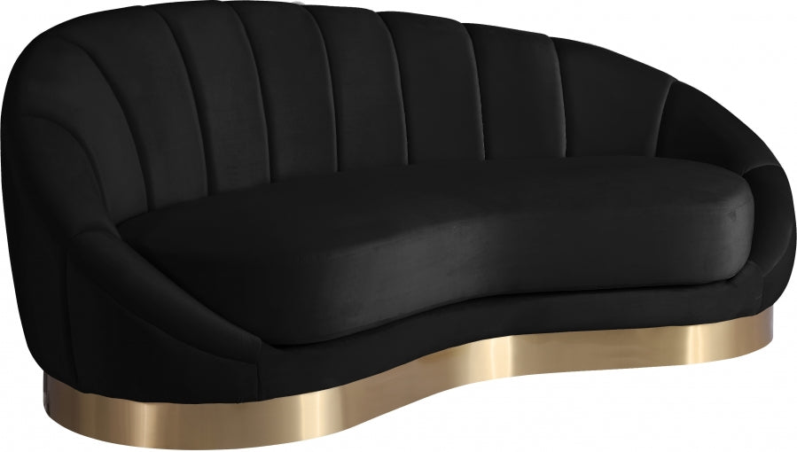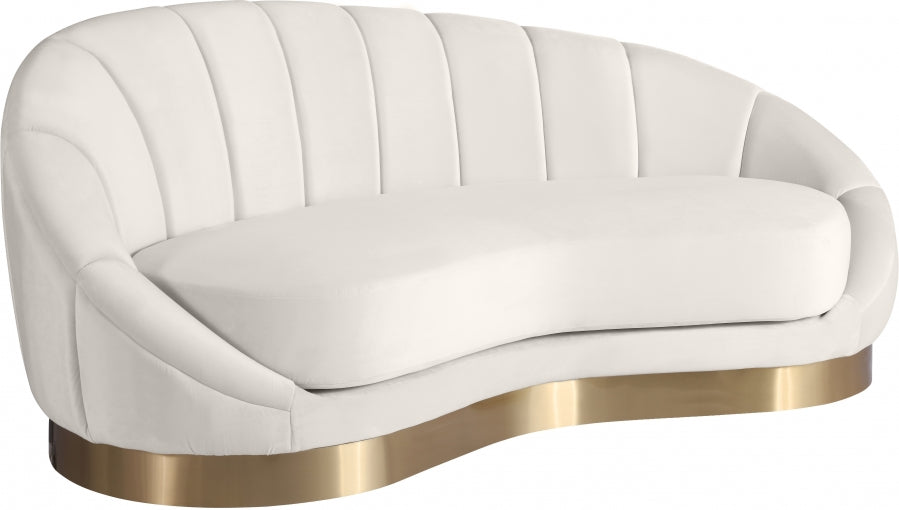 Détendez-vous et reposez-vous lorsque vous êtes assis sur cette méridienne en velours Shelly dotée d'un revêtement en velours doux. Cette jolie pièce est juste ce qu'il faut pour injecteur du drame dans votre espace, qu'elle soit utilisée seule ou en combinaison avec d'autres articles de la collection Shelly. La forme unique de la coque attire immédiatement l'attention et la base en acier inoxydable doré brossé cimente la base avec un panache contemporain.