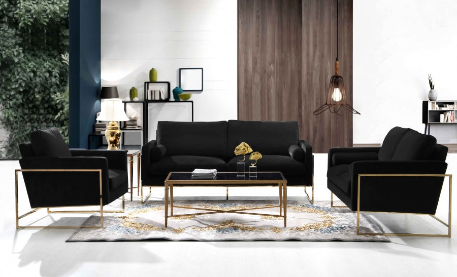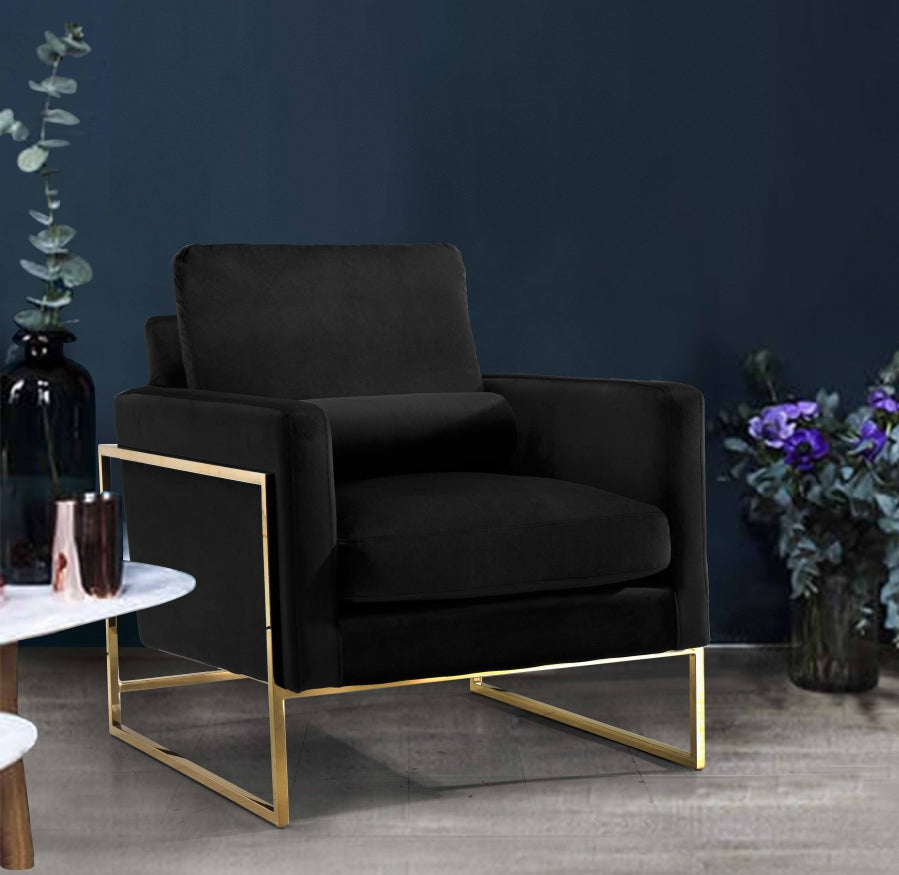Asseyez vos invités dans un luxe absolu sur la chaise en velours Mila. La couleur noire audacieuse fait une déclaration dans votre espace, et le cadre en acier inoxydable doré assure un soutien solide pendant que vous vous étendez ou faites une sieste. Il est livré avec deux coussins qui bercent vos côtés lorsque vous êtes assis, améliorant son niveau de confort. Beaucoup de dégagement sous ce canapé facilite le nettoyage et l'aspiration. Achetez-le seul ou associez-le au canapé ou à la causeuse assortis !