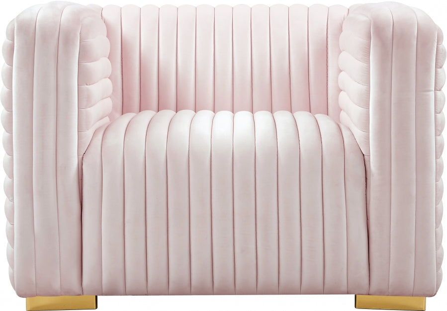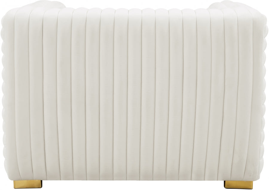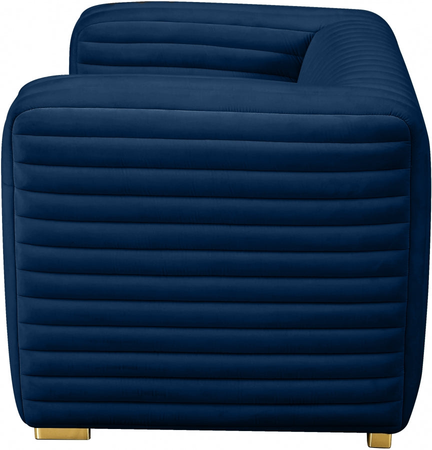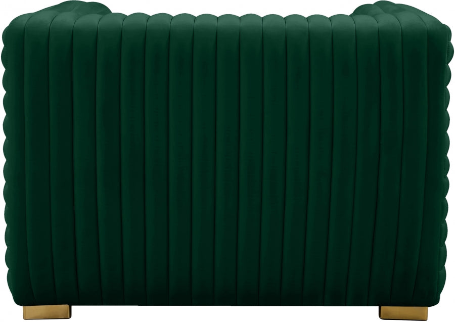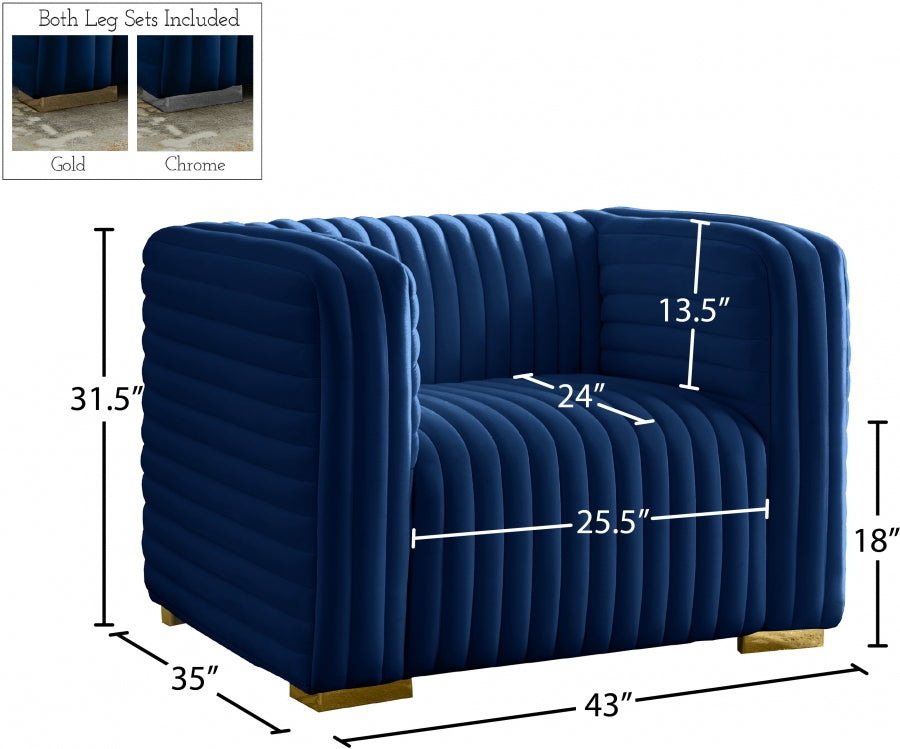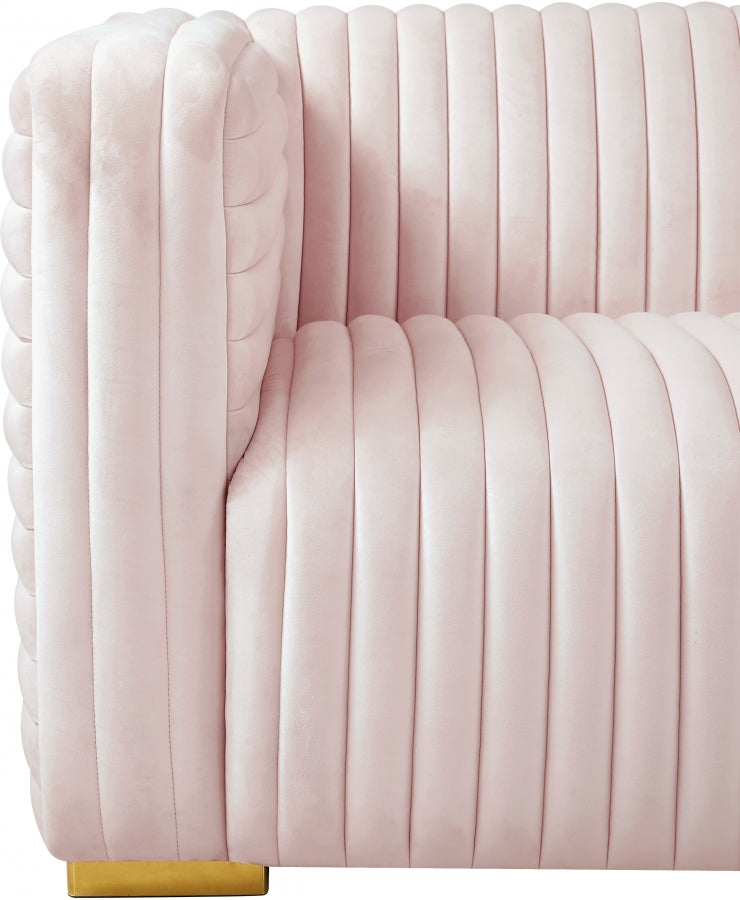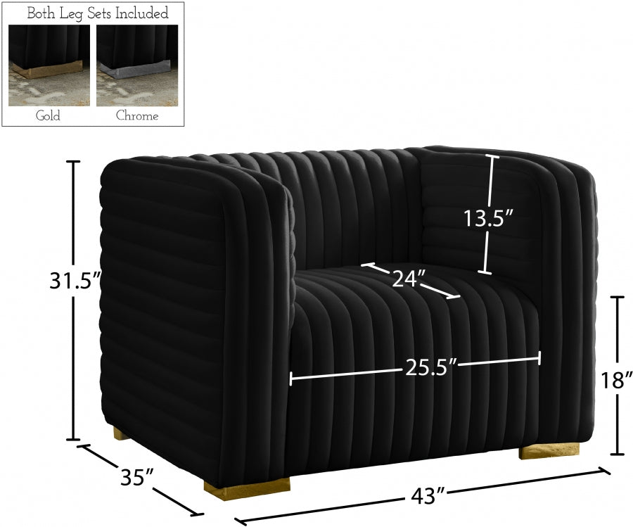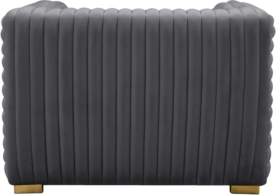 Apportez le décor de votre salon dans l'instant avec cette méridienne en velours Ravish. Cette magnifique chaise est entièrement recouverte d'un revêtement doux qui s'harmonise facilement avec d'autres éléments de couleur dans votre espace. Le capitonnage à canaux profonds qui s'étend horizontalement et verticalement le long de l'extérieur de la chaise ajoute à son look charmant, et il est livré avec des pieds dorés et chromés pour une finition personnalisée.