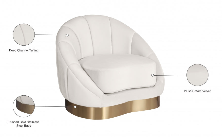 Détendez-vous et reposez-vous lorsque vous êtes assis sur cette chaise en velours Shelly dotée d'un revêtement en velours doux. Cette jolie pièce est juste ce qu'il faut pour injecteur du drame dans votre espace, qu'elle soit utilisée seule ou en combinaison avec d'autres articles de la collection Shelly. La forme unique de la coque attire immédiatement l'attention et la base en acier inoxydable doré brossé cimente la base avec un panache contemporain.