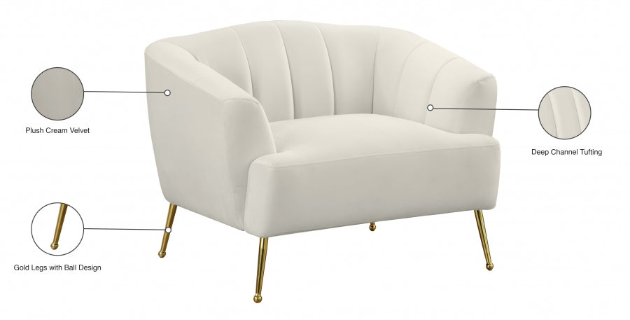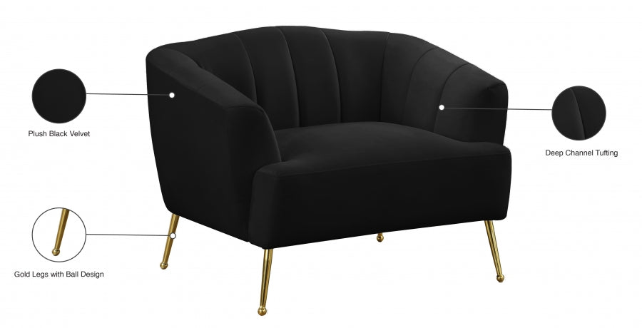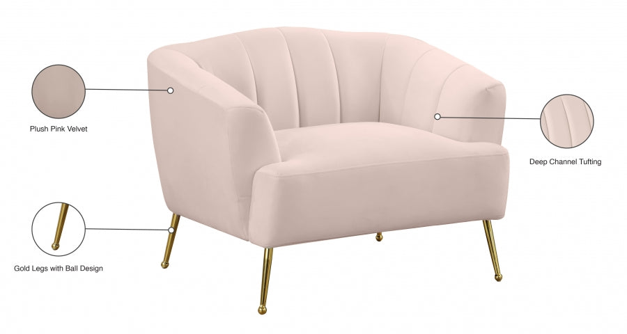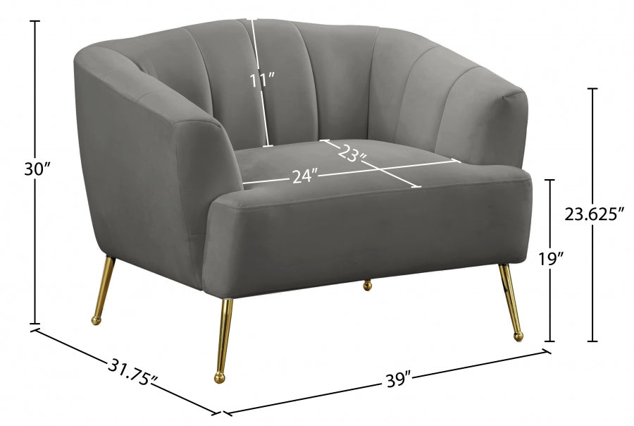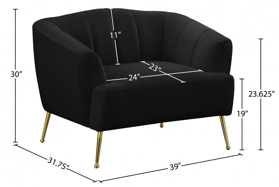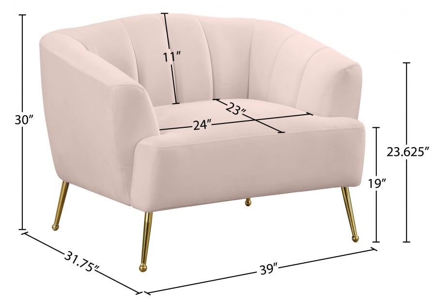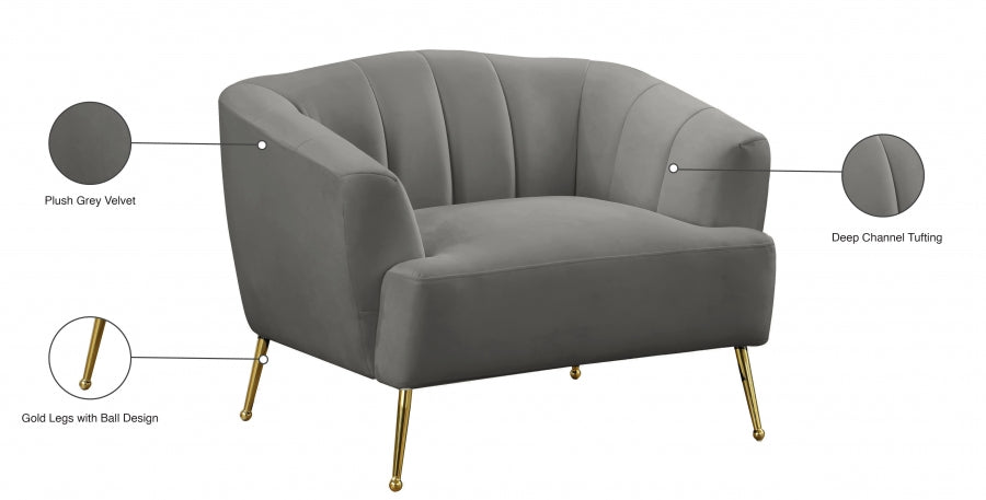 Habillez votre salon avec cette méridienne en velours Tori. Cette chaise moelleuse est dotée d'un revêtement en velours chic qui couvre chaque centimètre carré, ajoutant un look somptueux et svelte à votre pièce. Les pieds dorés avec un motif boule sur le pied ajoutent au look élégant de cette jolie chaise, et le capitonnage à canaux profonds ajoute du volume au dossier et aux oublis pour une sensation somptueuse lorsque vous vous asseyez pour vous détendre et vous détendre à la fin de la journée.