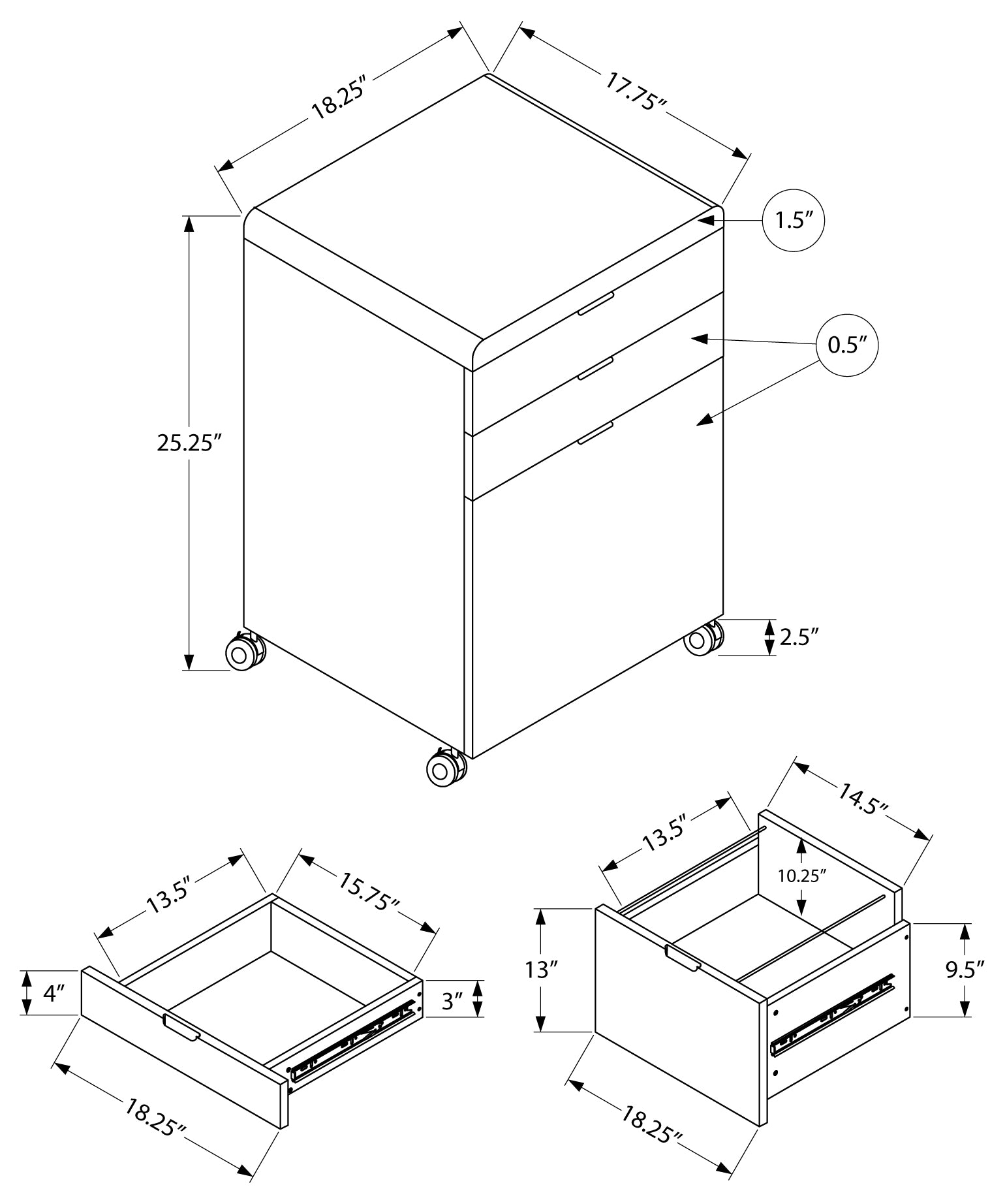 - Ce classeur à 3 tiroirs complète sans effort tout autre bureau assorti (vendu séparément)