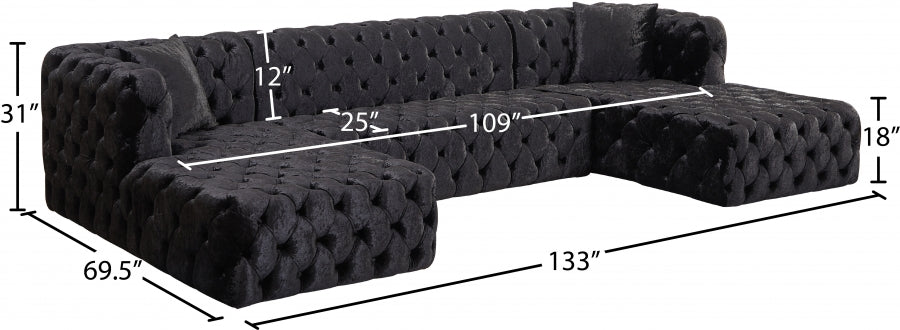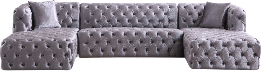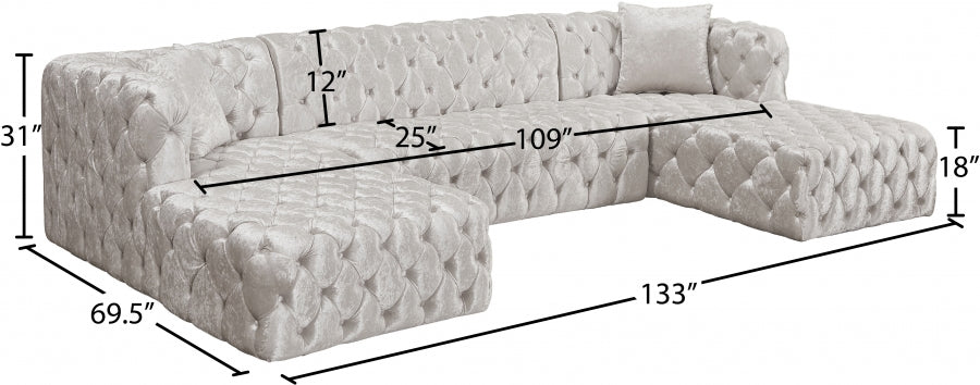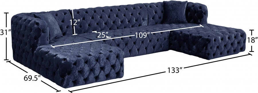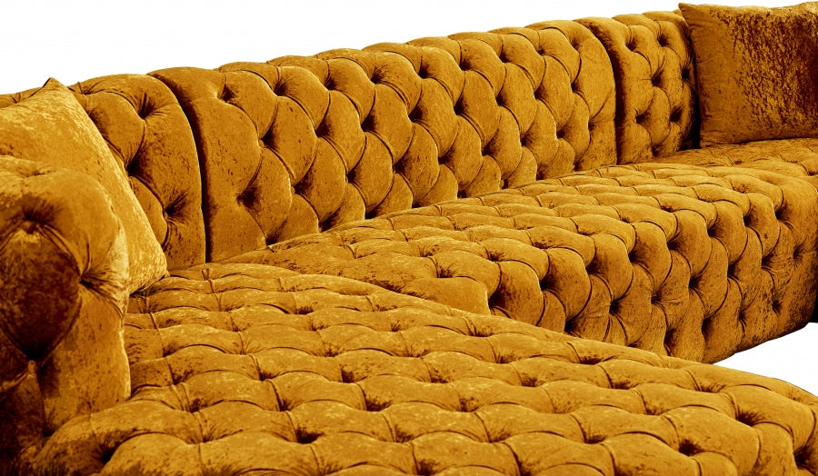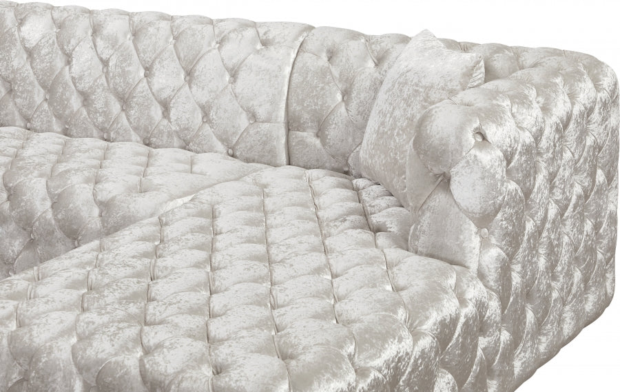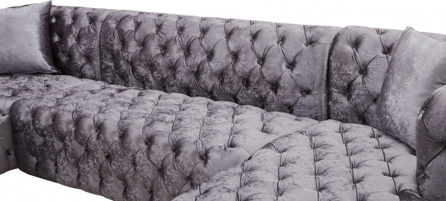 Faites de la place pour toute la bande lorsque vous composez ce canapé sectionnel 3 pièces en velours Coco à votre salon, votre coin-détente ou votre salle familiale. Ce magnifique sectionnel est doté d'un revêtement en velours écrasé doux couvrant toutes les surfaces pour un look somptueusement riche et élégant. Le capitonnage profond à l'avant, sur les côtés et à l'arrière de ce canapé sectionnel lui donne un aspect haut de gamme tout en ajoutant à sa forme résiliente. Des sièges profonds et une taille généreuse produisent cette section très invitante pour regarder la télévision ou faire de longues siestes reposantes.