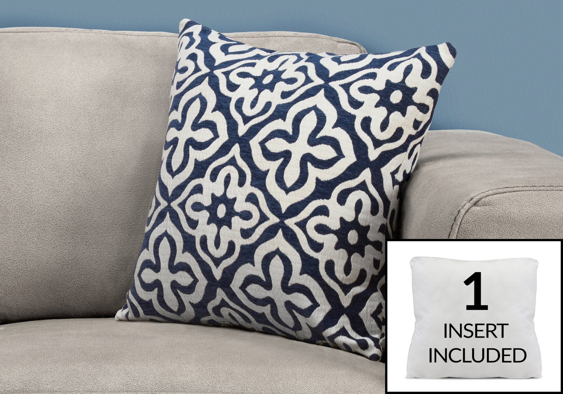 COUSSIN - 18"X 18" / MOTIF BLEU FONCÉ / 1PC