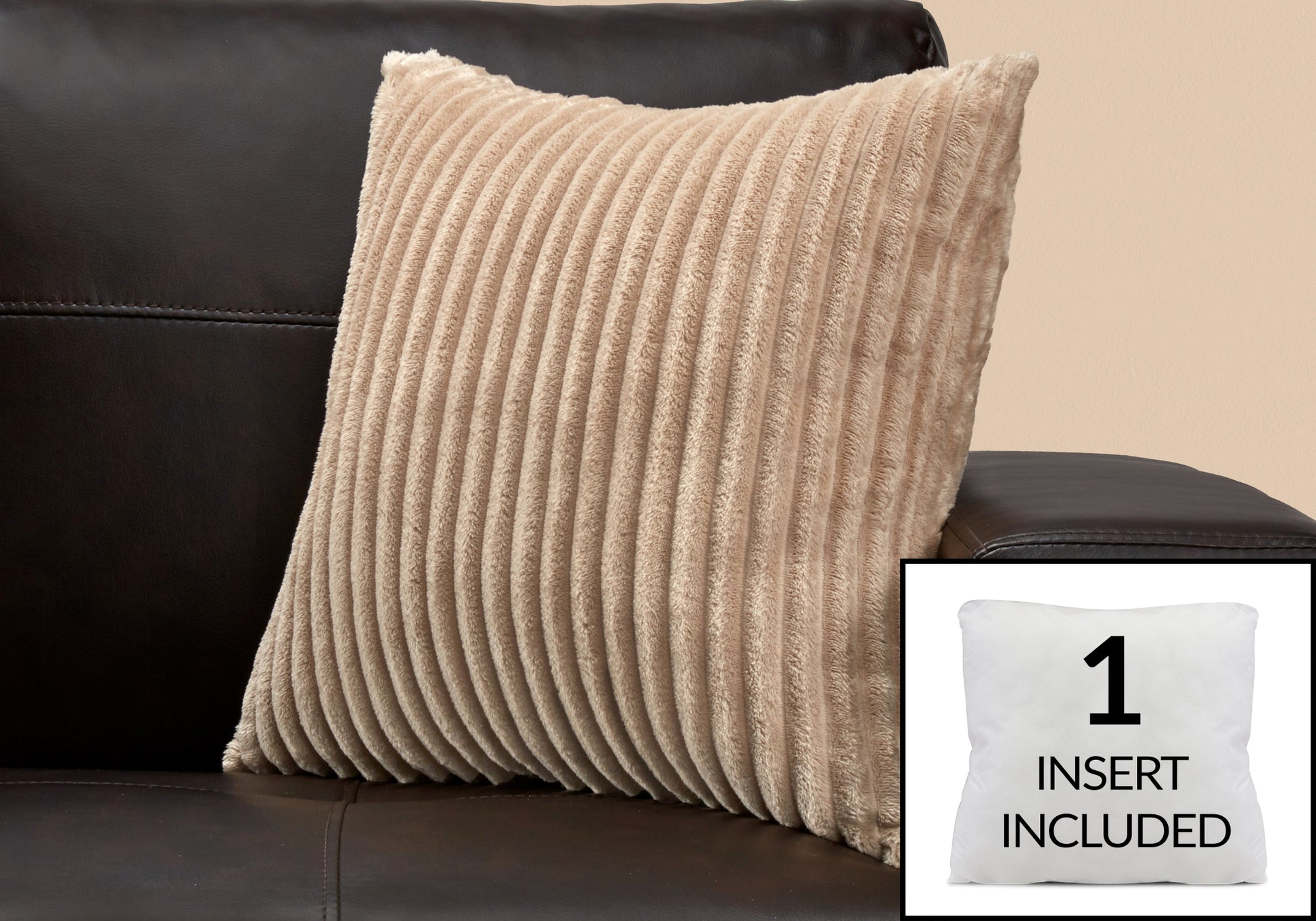 Apportez un look confortable à une pièce avec ce coussin d'appoint carré en fausse fourrure ultra douce avec une sensation de luxe. Le style côtelé classique des deux côtés dans une couleur beige chic ajoute une touche de luxe décontractée à votre fauteuil, canapé, lit ou banc d'entrée préféré. Le matériau en polyester doux est lavable en machine, avec une fermeture latérale éclair pratique pour retirer facilement l'insert en poly qui est inclus. Il suffit de le gonfler et de regarder ce coussin moelleux ajouter une chaleur instantanée à votre décor.