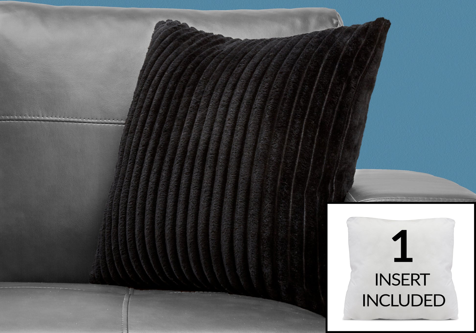 COUSSIN - 18"X 18" / STYLE CÔTELÉ ULTRA DOUX NOIR / 1PC