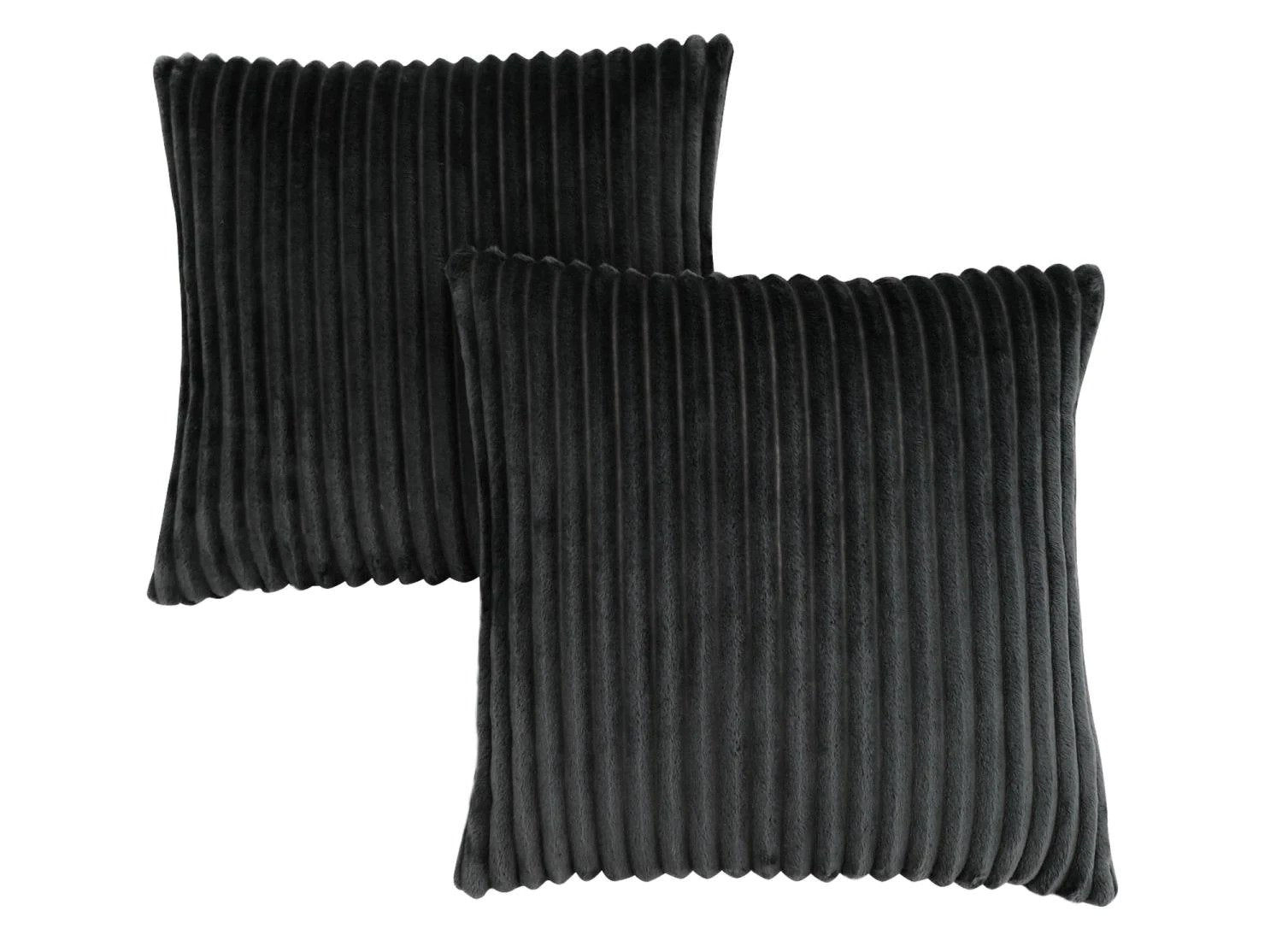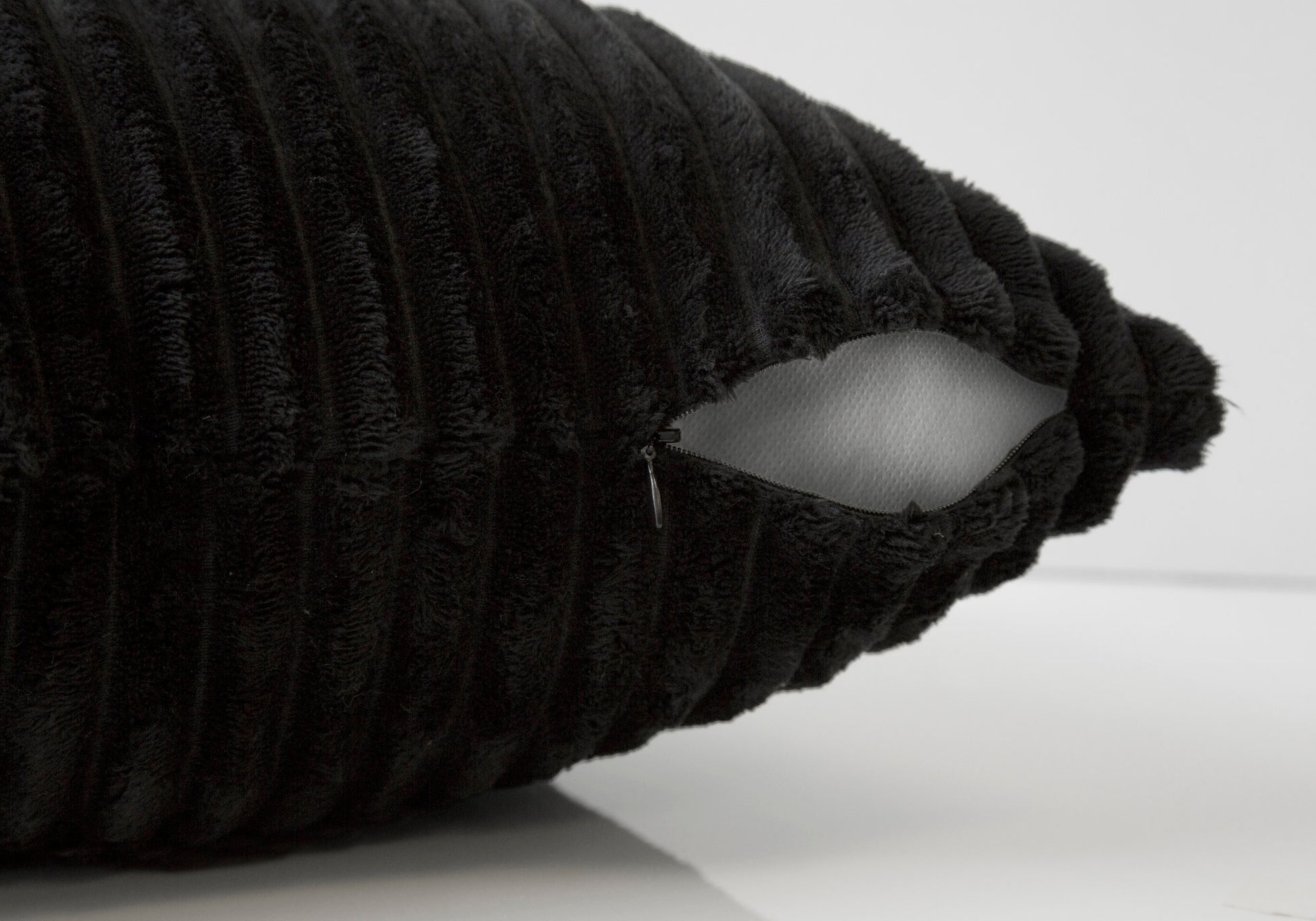 COUSSIN - 18"X 18" / STYLE CÔTELÉ ULTRA DOUX NOIR / 2PCS
