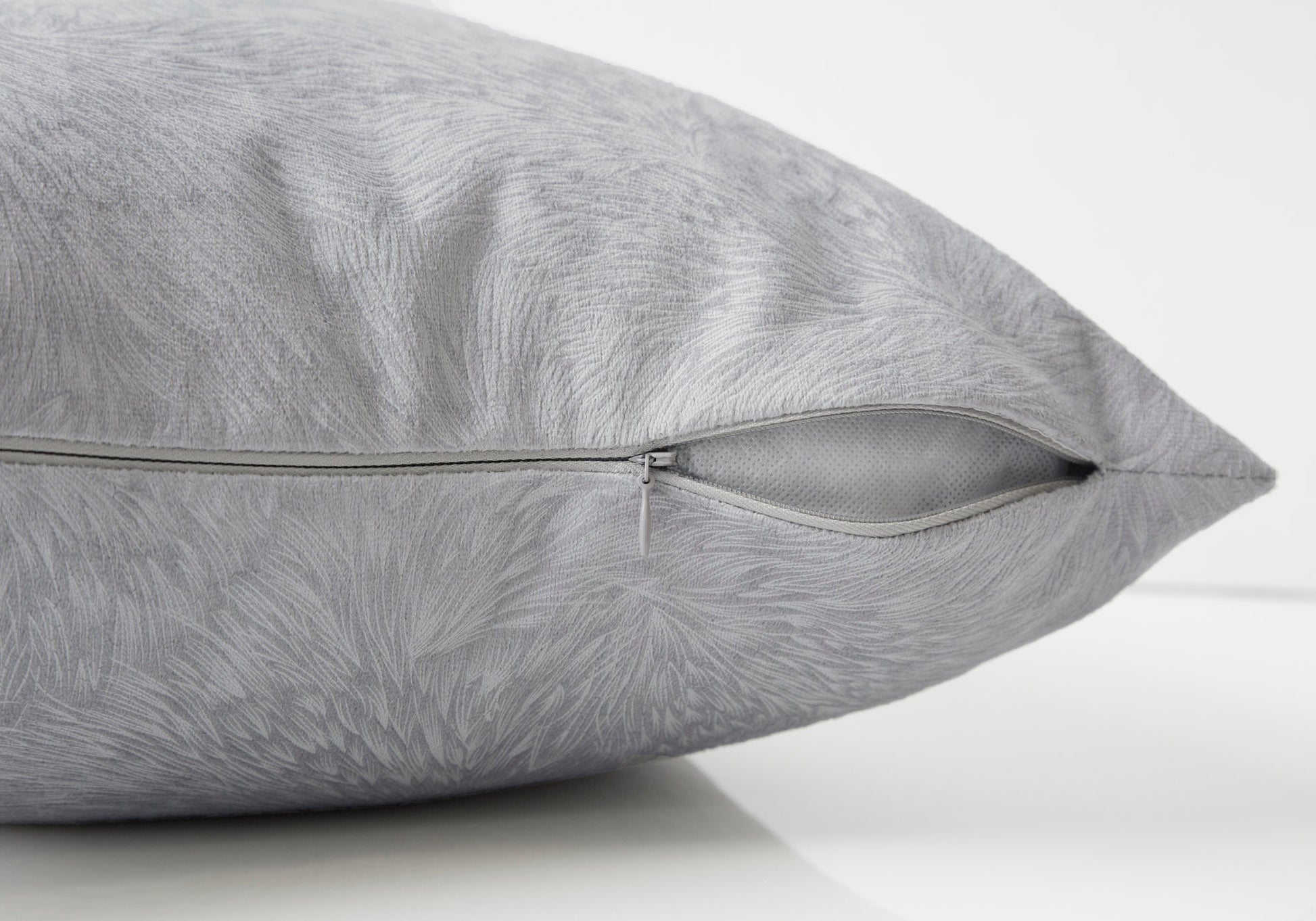 COUSSIN - 18"X 18" / VELOURS PLUME GRIS PALE / 2PCS