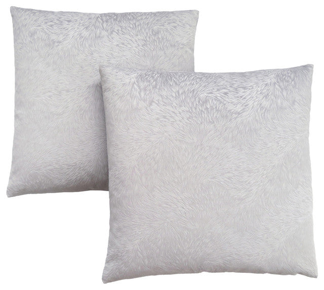 Mélangez l'art et le confort avec l'ajout de cet ensemble de 2 coussins décoratifs carrés chics. La finition en velours lisse dans une couleur gris clair moderne avec un motif à plumes unique des deux côtés, apporte du style à une chaise, un canapé, un lit ou un banc d'entrée préféré. Fabriqué à partir d'un tissu en polyester doux lavable en machine et la fermeture à glissière latérale pratique permet un retrait facile des inserts en polyester. Ces coussins veloutés luxuriants égayeront le décor de n'importe quelle pièce.