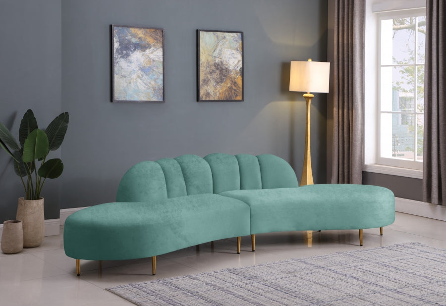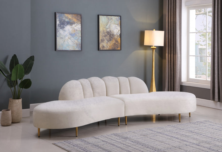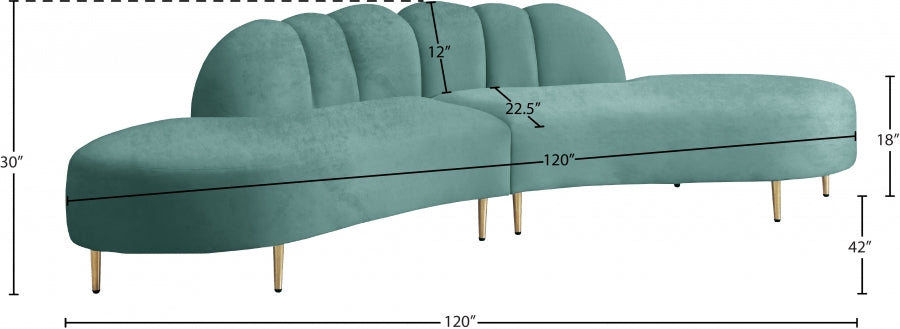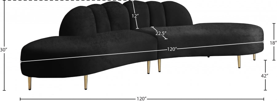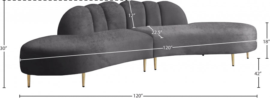 Rehaussez votre intérieur avec l'ajout de ce canapé sectionnel 2 pièces en velours Divine. Cette belle option de siège est dotée d'un revêtement en velours doux couvrant chaque centimètre carré, assurant votre confort total pendant que vous vous étendez sur toute la journée. La forme de la coquille et le capitonnage à canaux profonds ainsi que les pieds en acier inoxydable doré de la pièce lui confèrent une sensation ultra contemporaine qui convient parfaitement à votre décor moderne.
