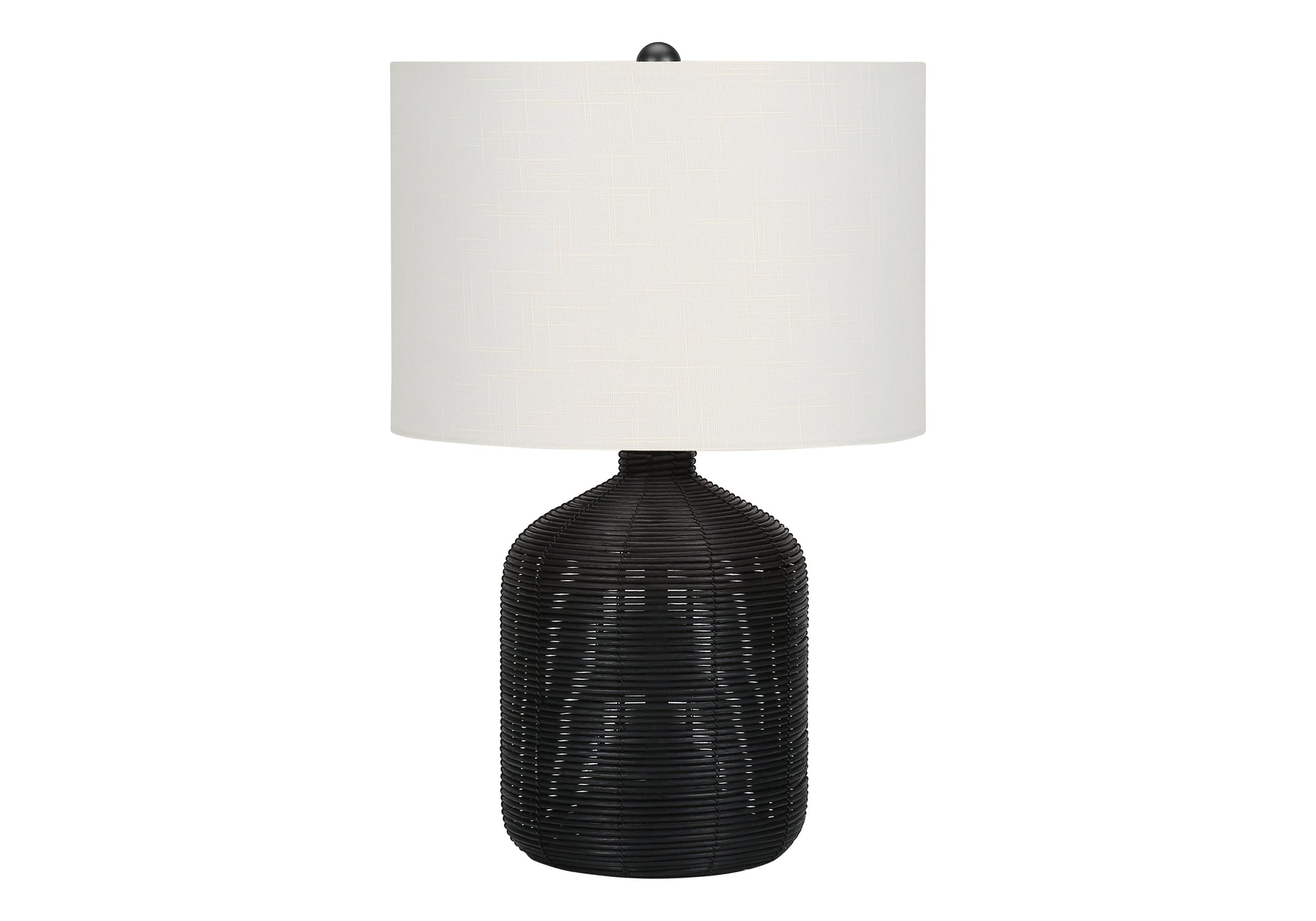 ÉCLAIRAGE - LAMPE DE TABLE 23"H ROTIN NOIR / ABAT-JOUR IVOIRE