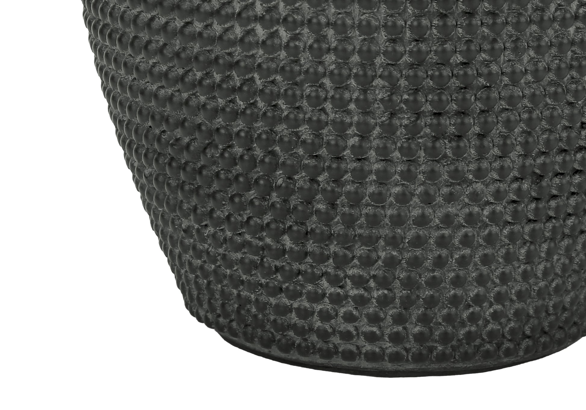 - Une lampe de table saisissante et contemporaine de 24 pouces avec une base en résine noire dans une finition texturée en pointillés en relief, avec un simple abat-jour tambour en tissu ivoire et surmontée d'un fleuron en métal argenté, ajoute une ambiance bohème- glam élégante dans un salon, une entrée. , chambre ou bureau à domicile.