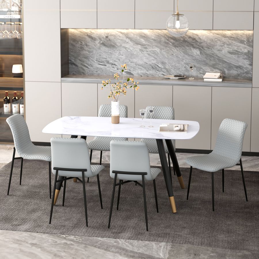 Emery/Brixx Ensemble de salle à manger 7 pièces en blanc avec chaise gris clair ( Meuble Mtl )