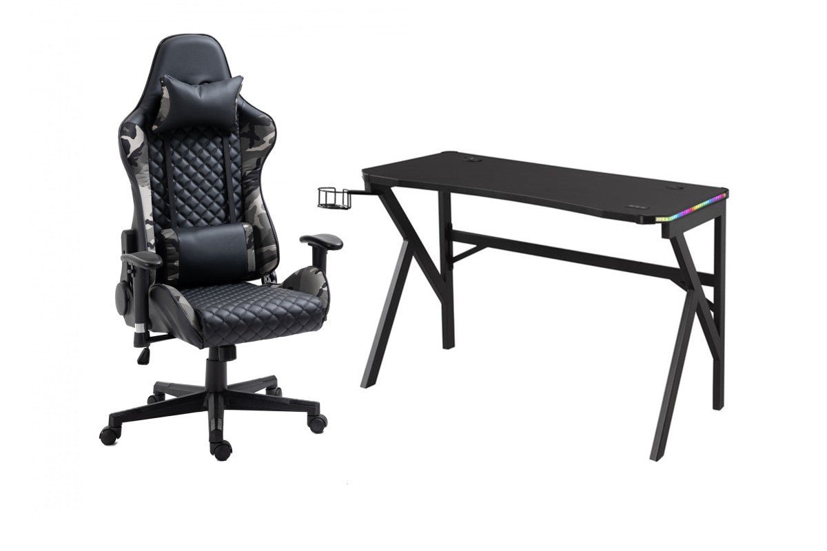 ENSEMBLE BUREAU ET CHAISE GAMING, CAMOUFLAGE/NOIR ( Meuble Mtl )