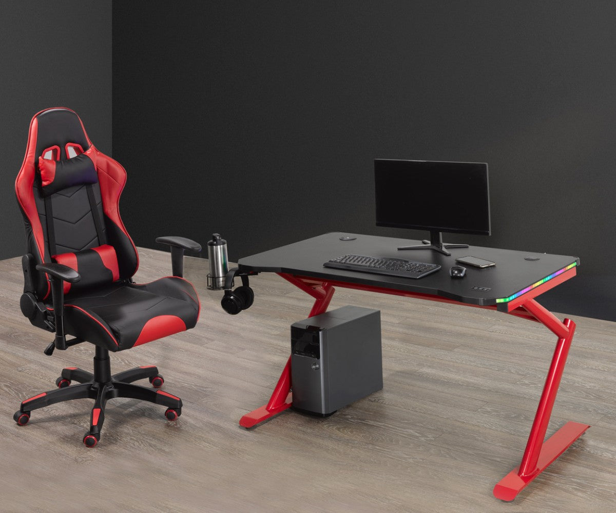 ENSEMBLE BUREAU ET CHAISE GAMING, NOIR/ROUGE ( Meuble Mtl )