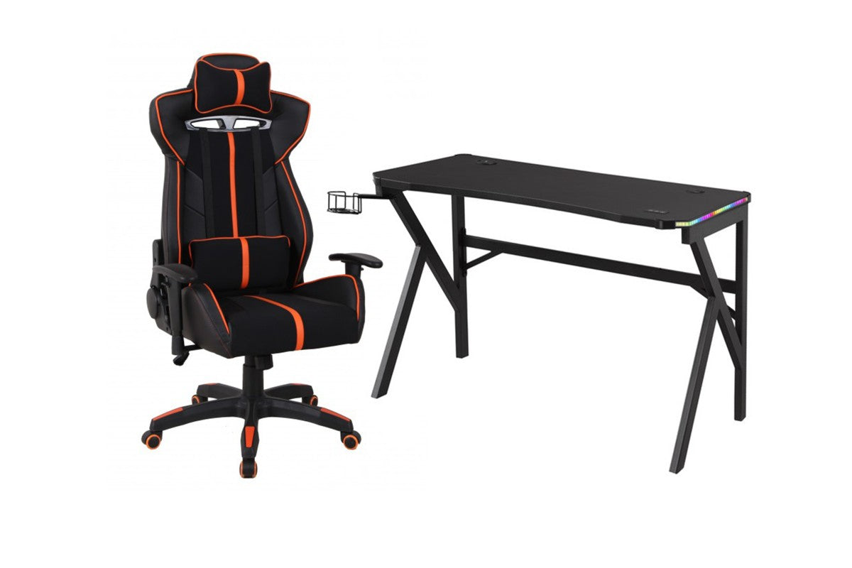 ENSEMBLE BUREAU ET CHAISE GAMING, ORANGE/NOIR ( Meuble Mtl )