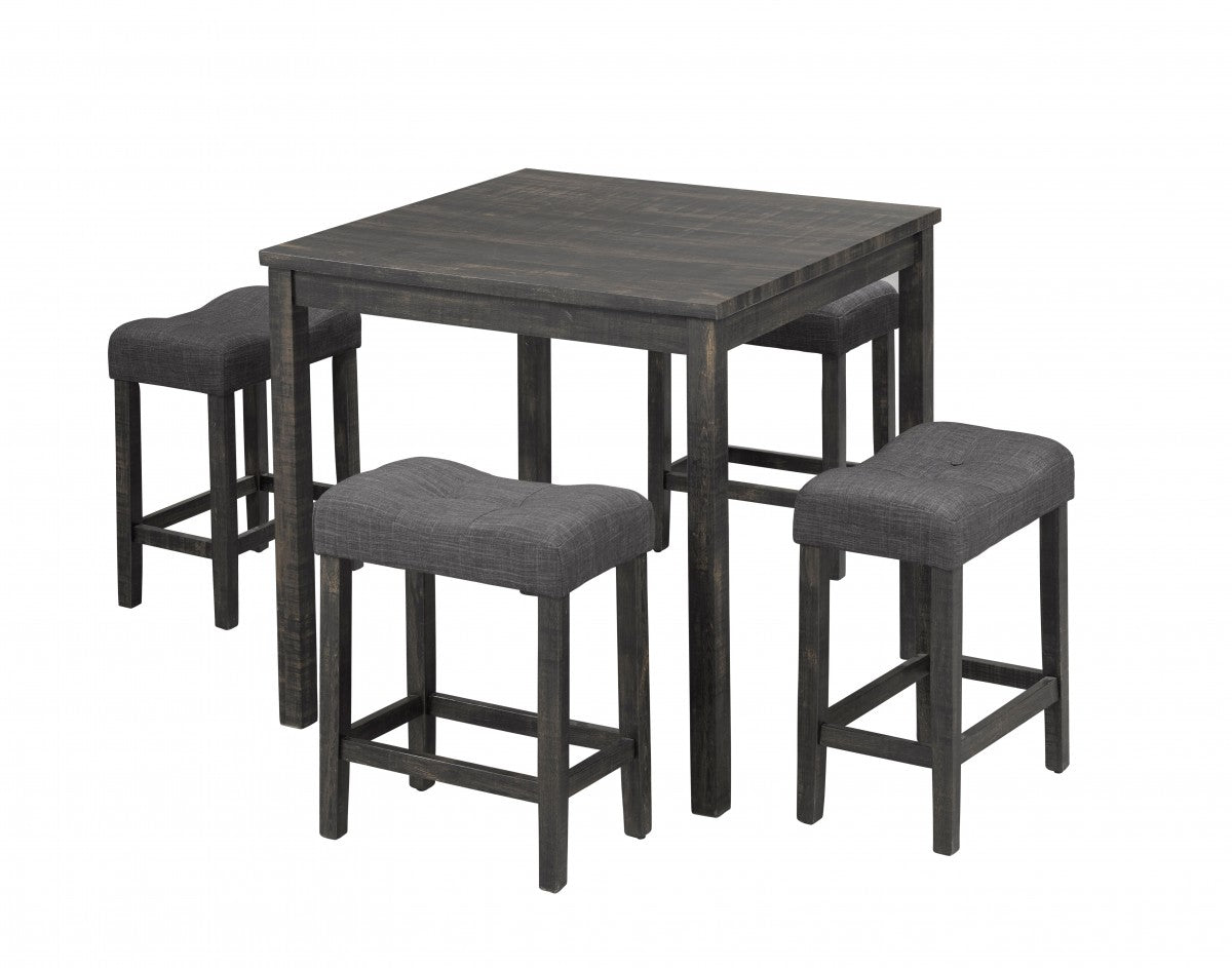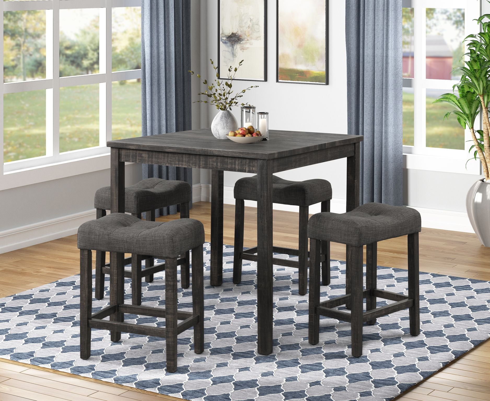 Créez une esthétique convaincante et cohérente dans votre arrangement avec cet ensemble de salle à manger de cinq pièces à hauteur de comptoir, qui comprend une table et quatre tabourets. Perchée sur des pieds fuselés, la table en bois présente une silhouette rectangulaire au design épuré. Chaque siège présente une conception de selle sans dossier avec un tissu rembourré 100 % polyester, offrant une sensation invitante. Construit dans un souci de durabilité, cet ensemble garantit à votre famille et à vos invités une expérience culinaire confortable. De plus, cet ensemble est inondé d'une finition gris foncé neutre, ce qui lui permet de se fondre dans une variété de palettes de couleurs.