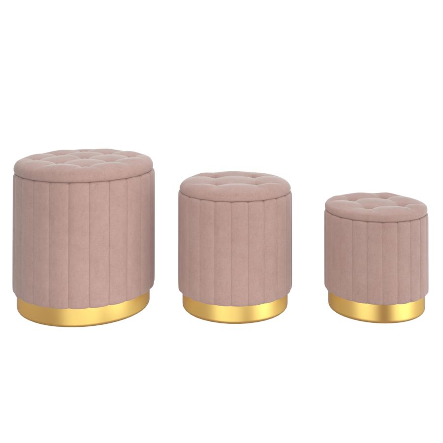 Ensemble de 3 poufs de rangement Tobi en blush et or