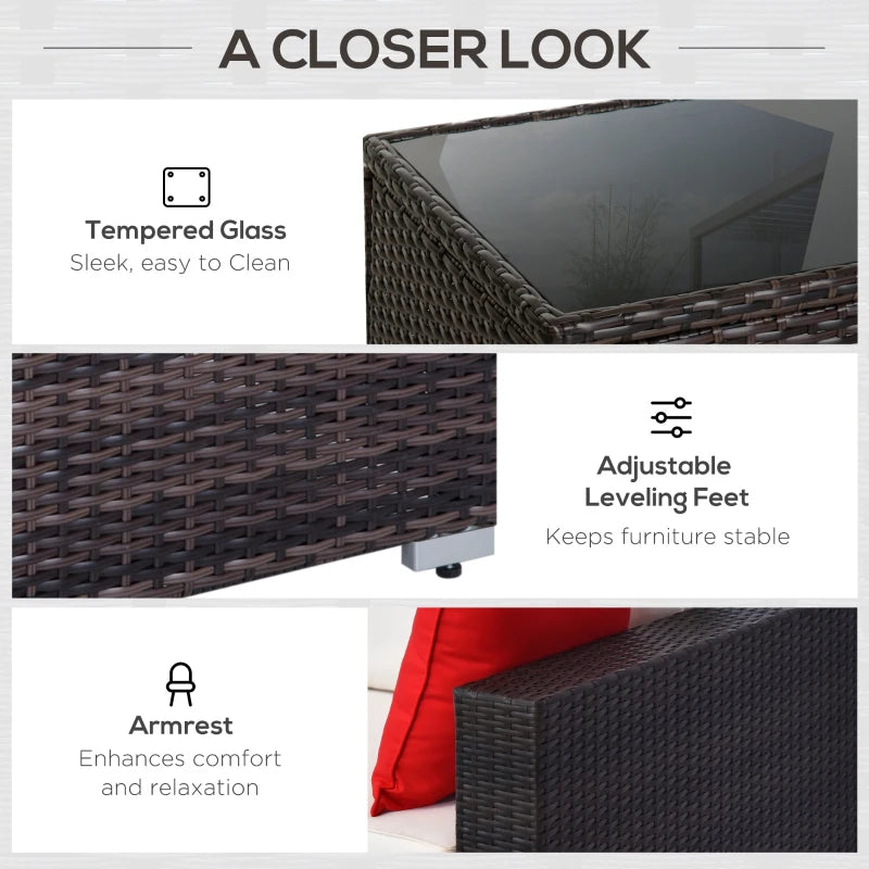 Ensemble de 6 meubles de patio en osier et rotin PE avec coussins épais, canapé sectionnel de jardin de luxe avec table en verre, café foncé et blanc crème