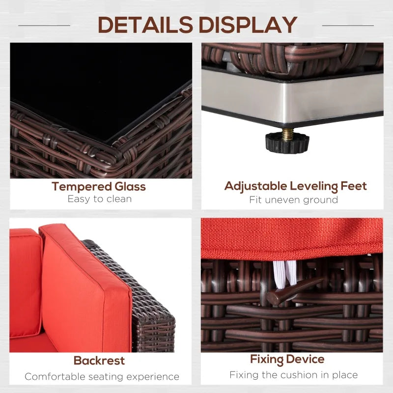 Ensemble de canapé de patio en osier 7 pièces, ensemble de meubles de conversation sectionnels en rotin PE avec table basse et coussin en verre trempé pour jardin, arrière-cour, rouge