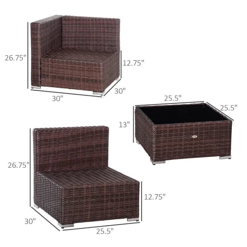 - Conception modulaire : cet ensemble de meubles sectionnels d'extérieur de 7 pièces comprend quatre chaises du milieu, deux chaises d'angle et une table basse en verre trempé, peut être configuré de différentes manières pour s'adapter à votre espace extérieur