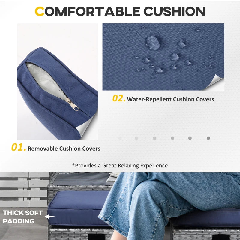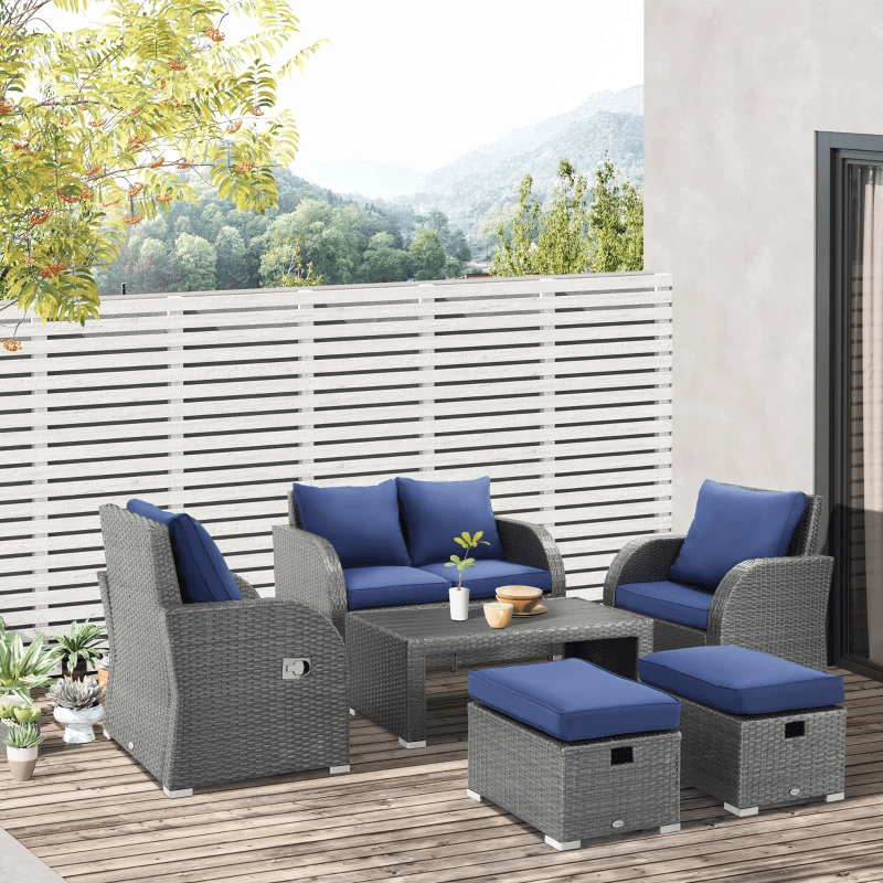 Ensemble de canapés d'extérieur en osier et rotin, 6 pièces, chaise simple inclinable à angle réglable, avec ressort à gaz et coussins doux lavables, bleu foncé