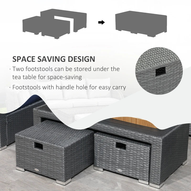 - Table centrale élégante : utilisez la table basse centrale à lattes en plastique à grain de bois pour des collations, des boissons, votre téléphone ou même une plante en pot, vous assurant de ne jamais avoir une longue attente pour profiter de votre espace assis. De plus, les poufs peuvent être rangés sous la table basse pour gagner de la place lorsqu'ils ne sont pas utilisés.