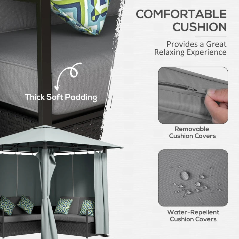 - Conception tout-en-1 : la section extérieure est idéale pour le jardin et les espaces extérieurs, sa conception de configuration connectée comprend deux canapés deux places, une grande table d'appoint de rangement carrée pour garder tout rangé et soigneusement caché et un belvédère. Les meubles de patio en osier peuvent accueillir jusqu'à quatre personnes avec beaucoup d'espace pour bouger.