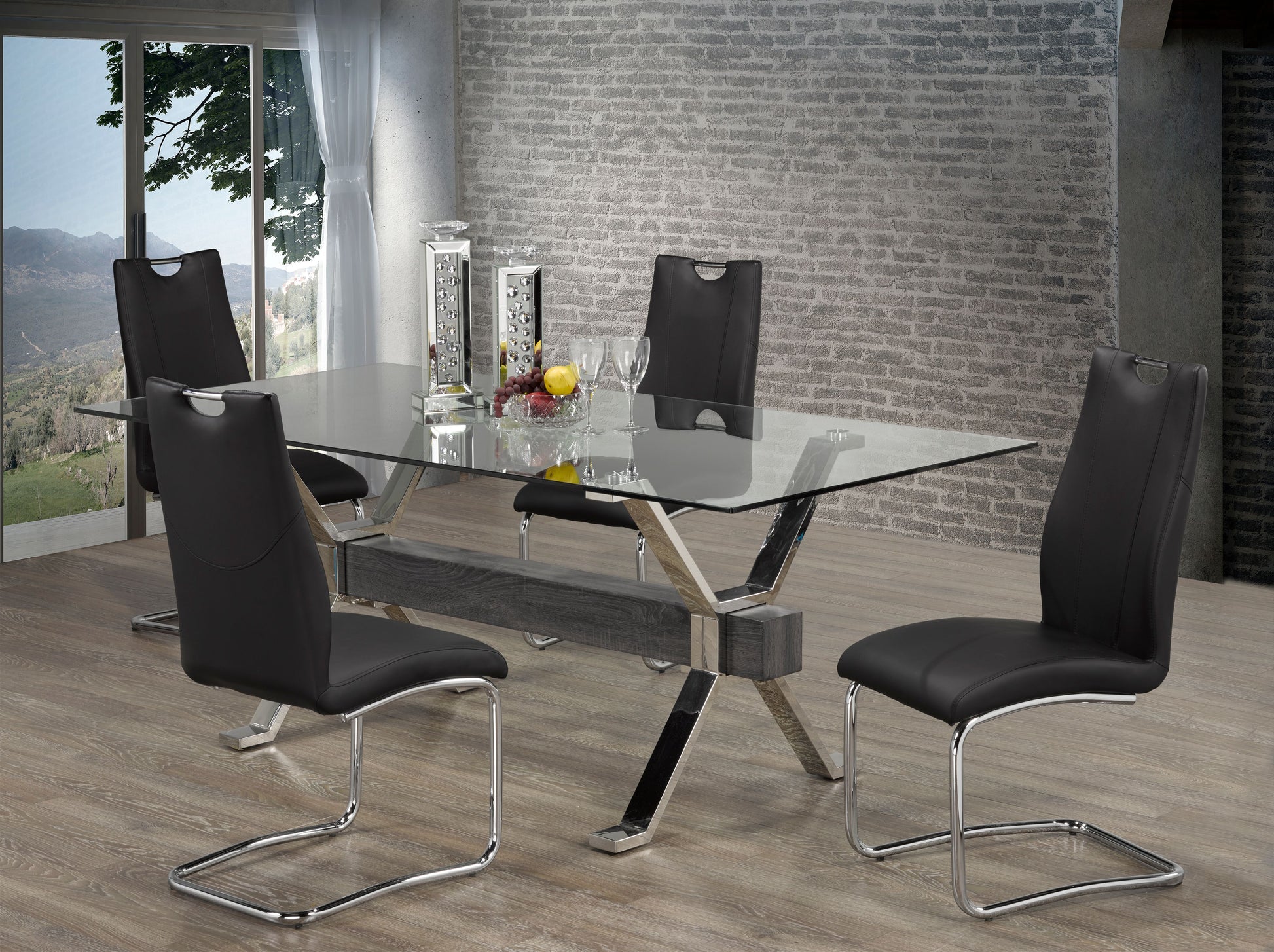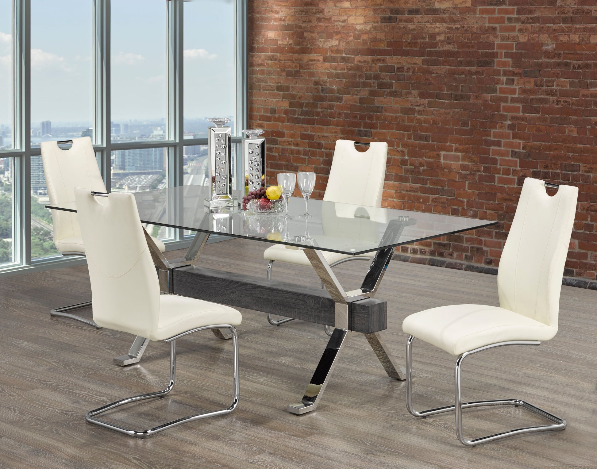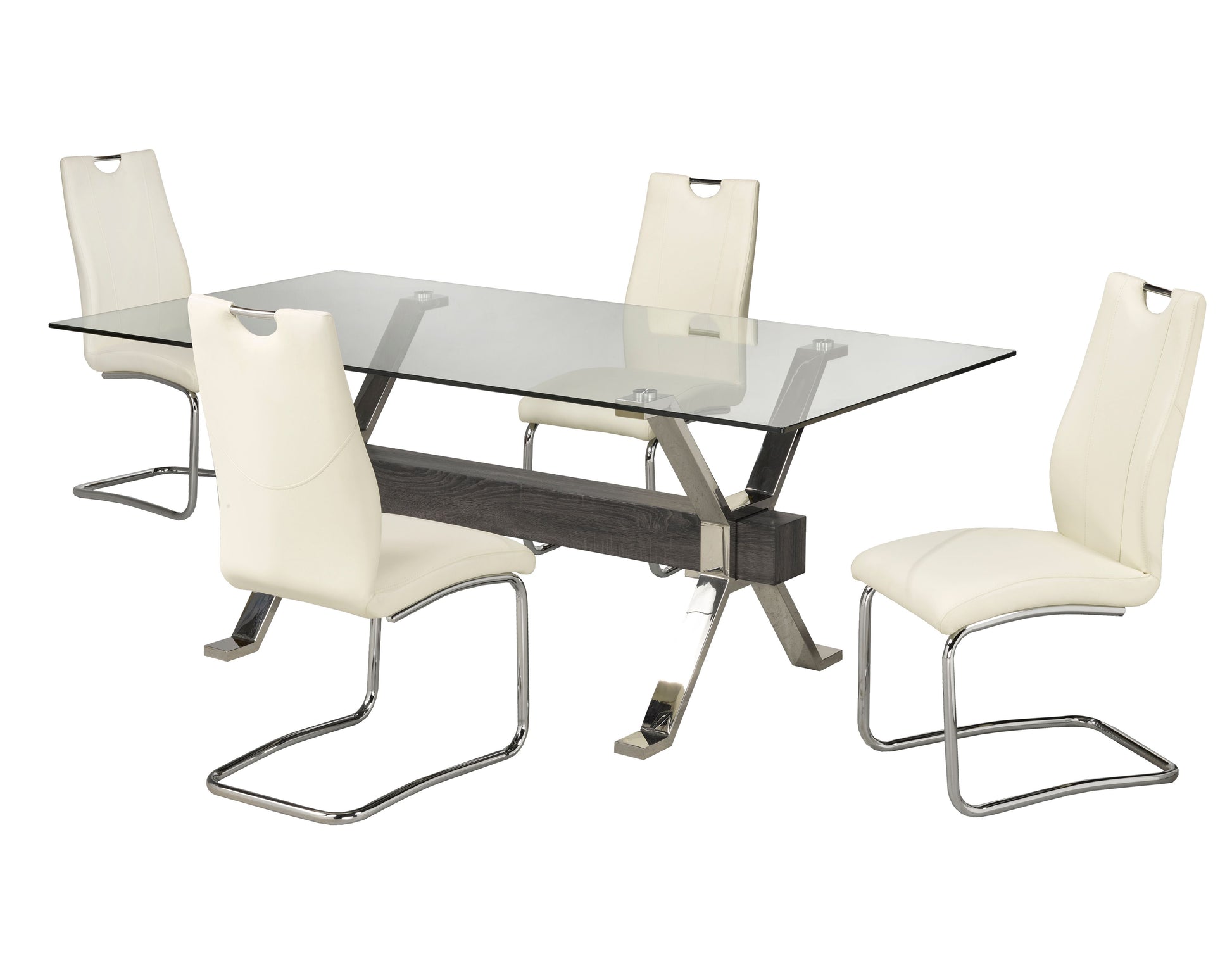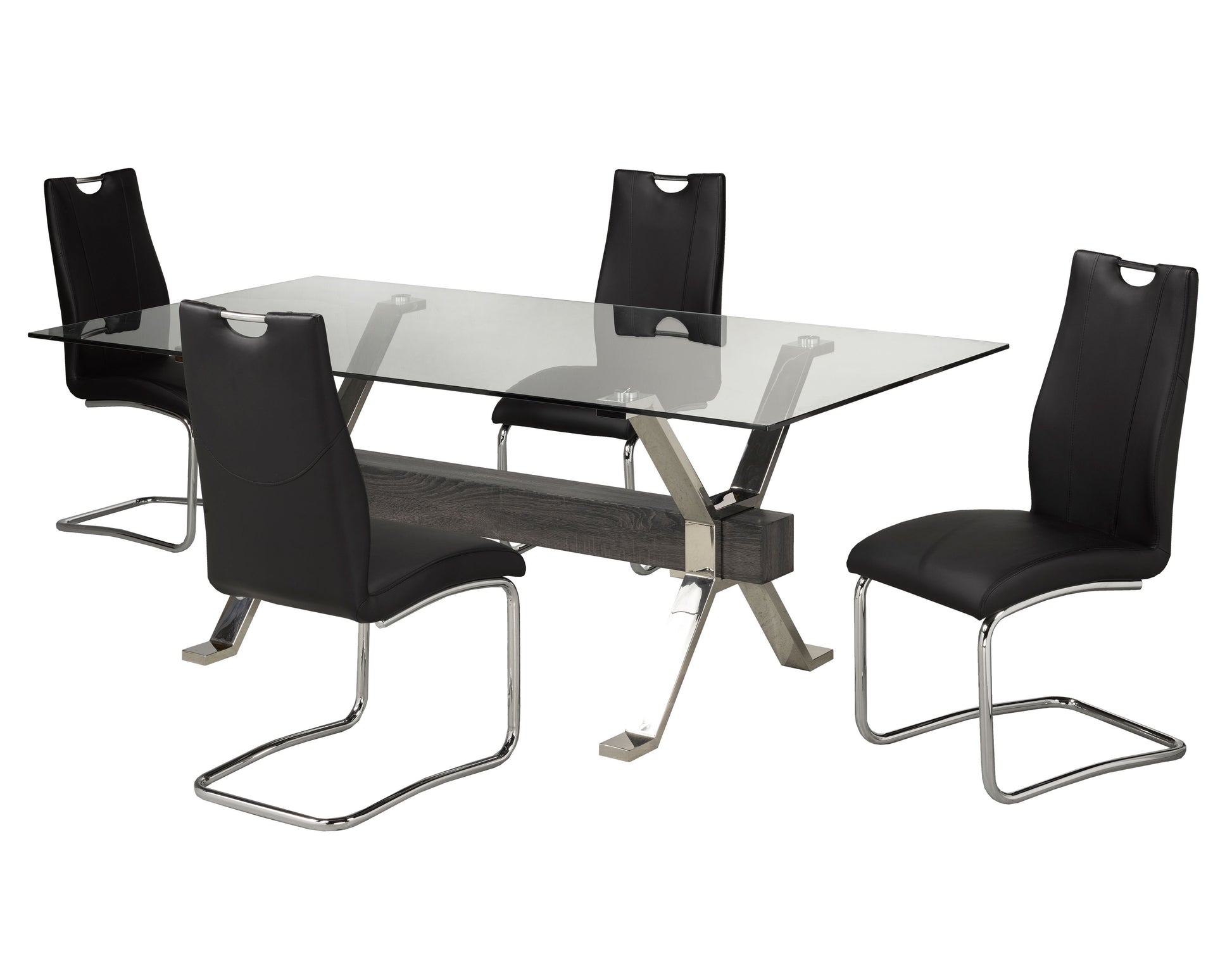 • Comprend : Table + 4 chaises de salle à manger• Dessus en verre trempé