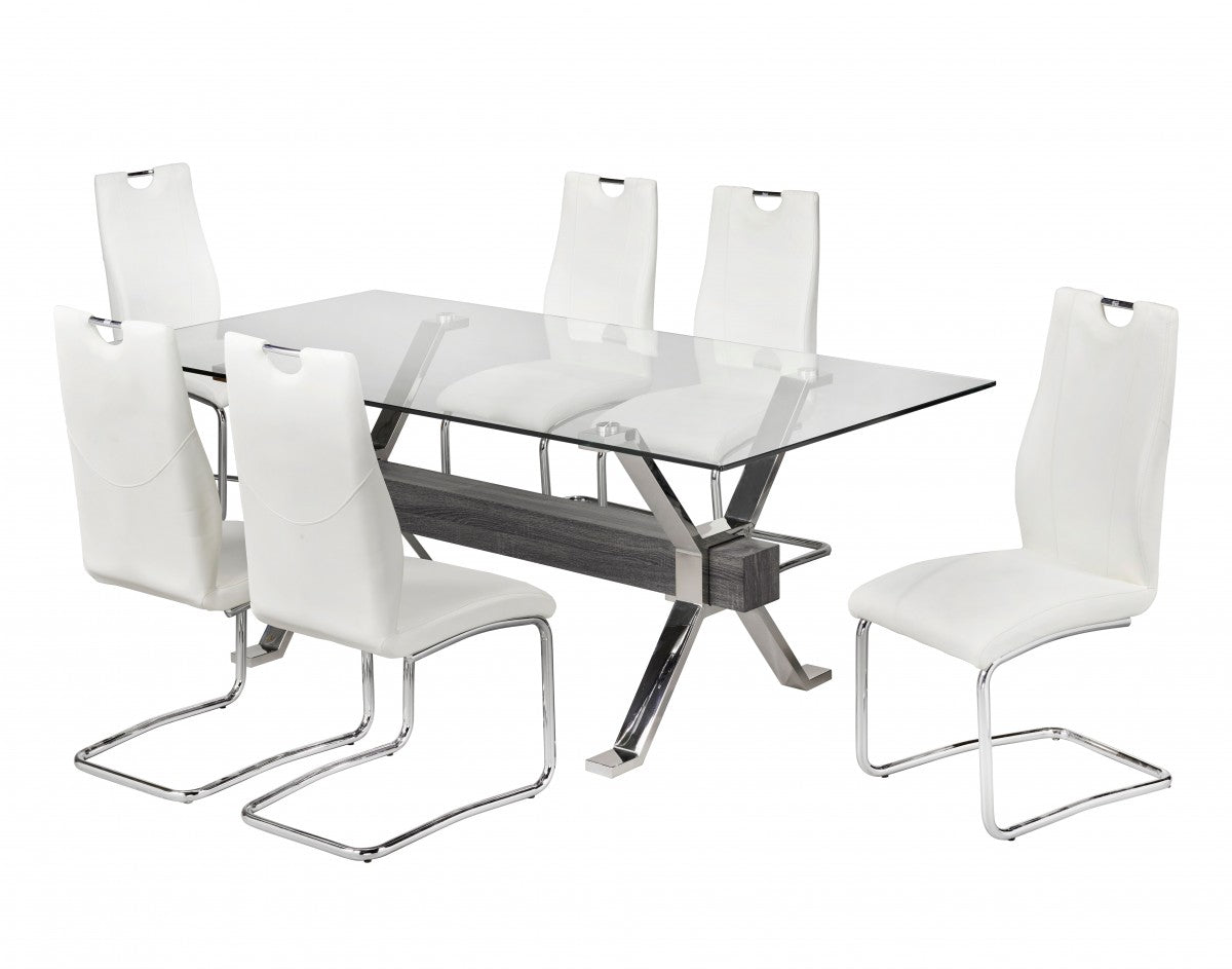 Cet ensemble de salle à manger contemporaine attire l'attention avec son design élégant et moderne. La table présente un dessus de table en verre trempé, soutenu par un piédestal incurvé accrocheur dans des couleurs contrastées populaires. Les chaises sont habilement recouvertes de similicuir riche enveloppant les sièges et les dossiers profilés dans un effort pour exprimer le confort et la beauté moderne en un seul souffle. Une fois que tout est réuni, vous obtenez un superbe ensemble de salle à manger construit avec une qualité durable et un confort durable à l'esprit.