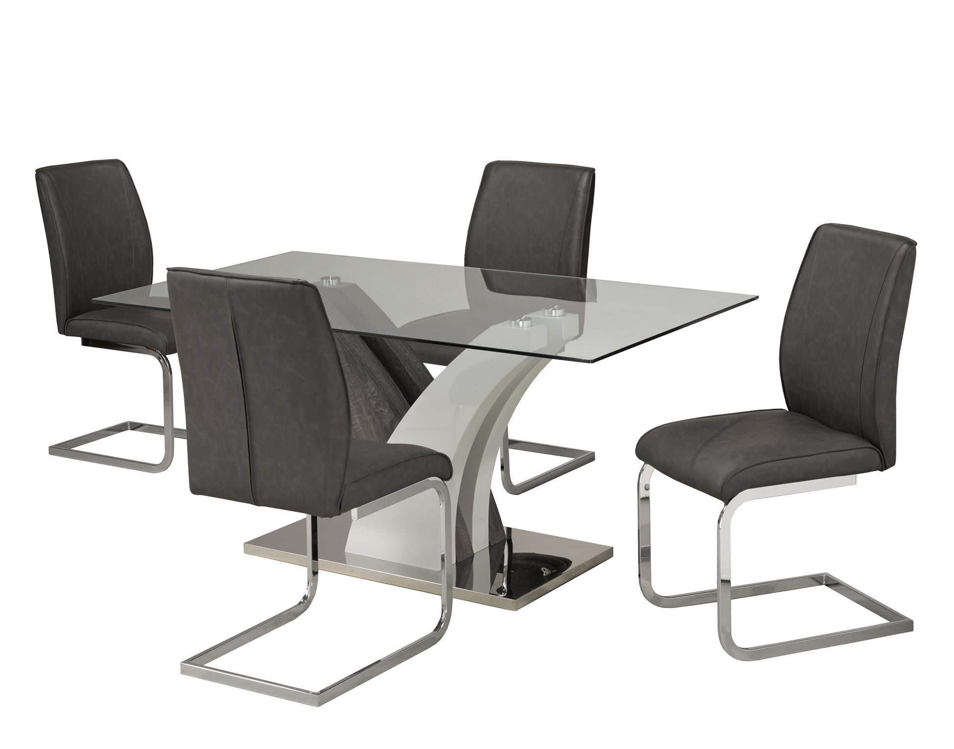 • Comprend : Table + 4 chaises de salle à manger• Dessus en verre trempé